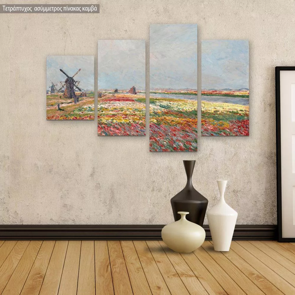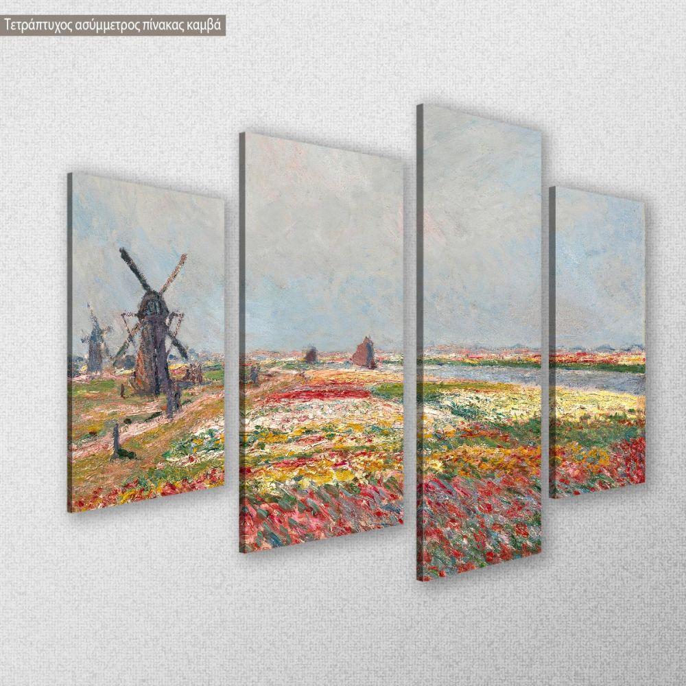 Canvas print Tulip fields with windmills, Monet C, four panels