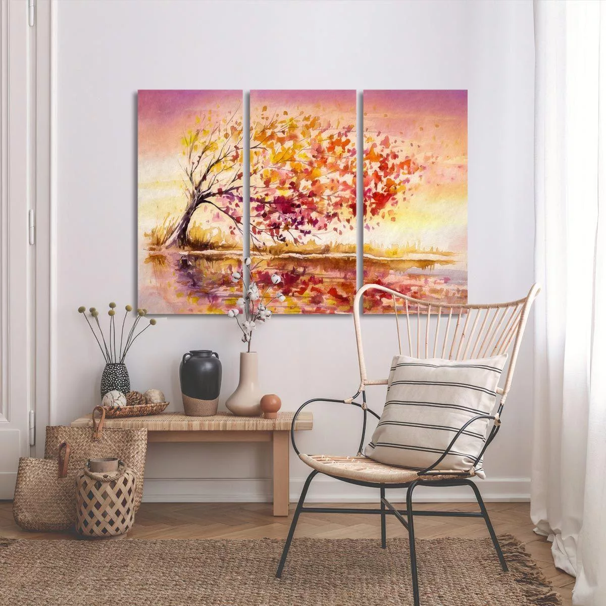 Canvas print Autumn wind tree, 3 panels