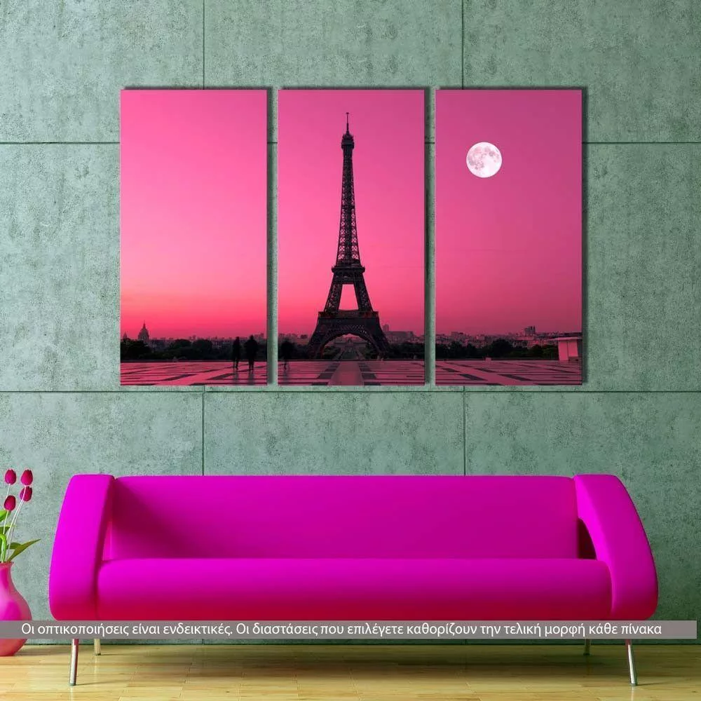 Canvas print Eiffel under moon, 3 panels