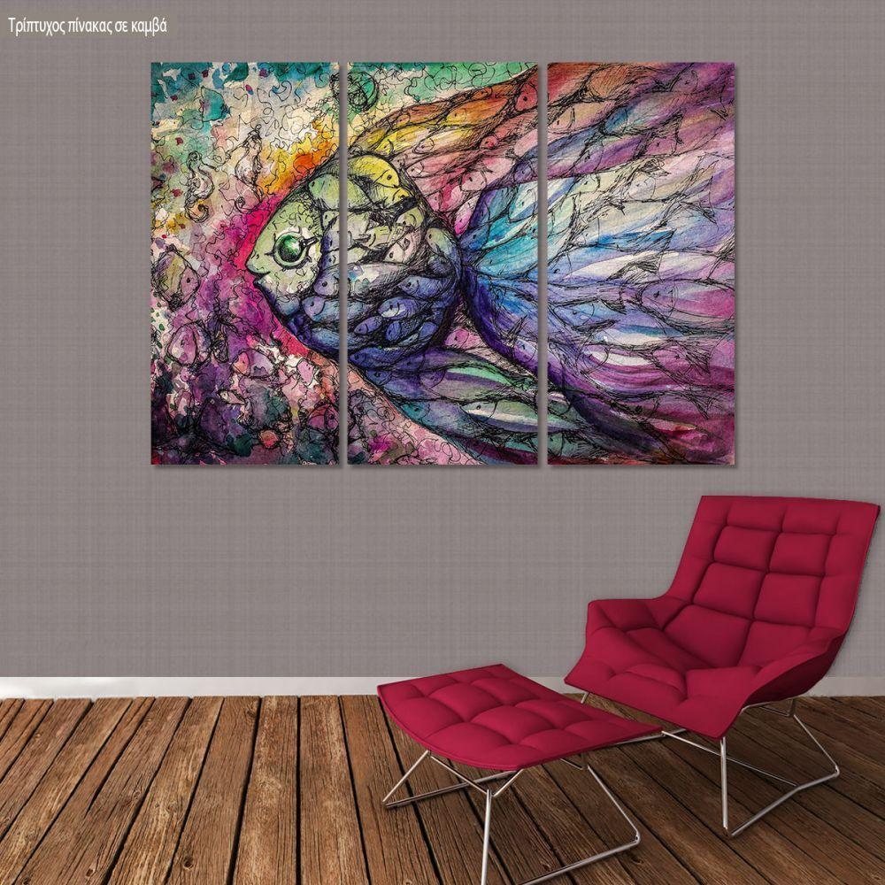 Canvas print Fish watercolors, 3 panels