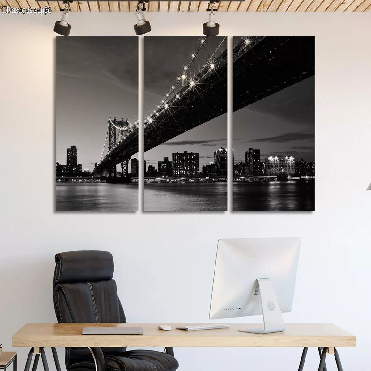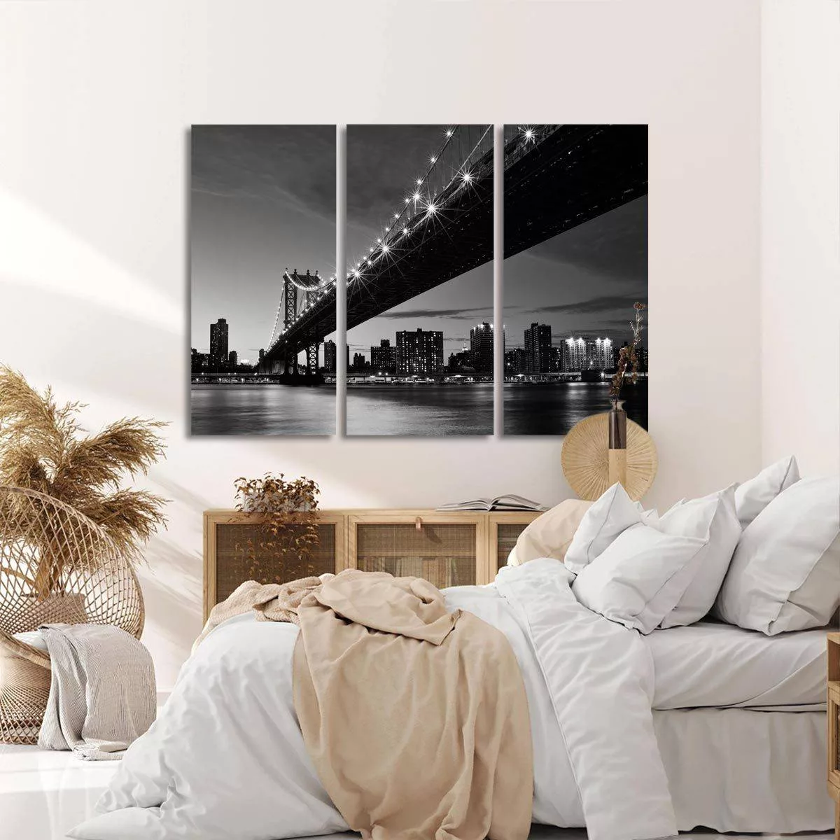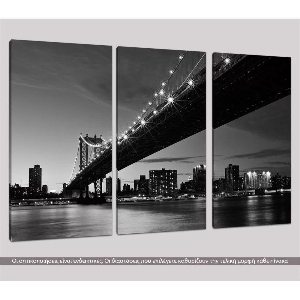 Canvas print Manhattan bridge grayscale, 3 panels