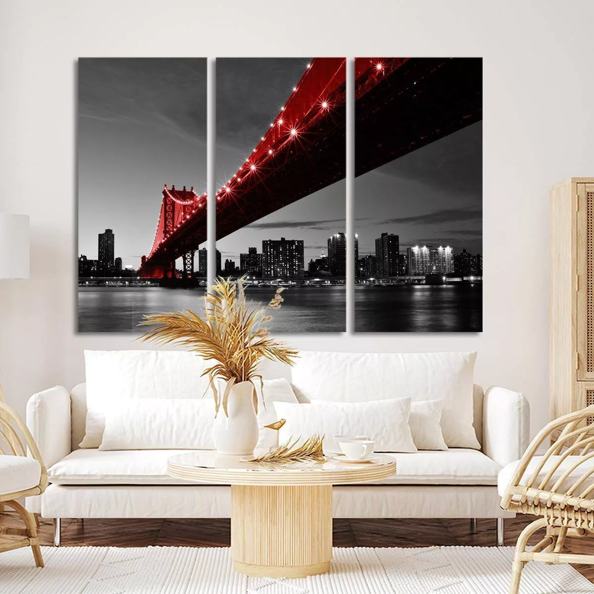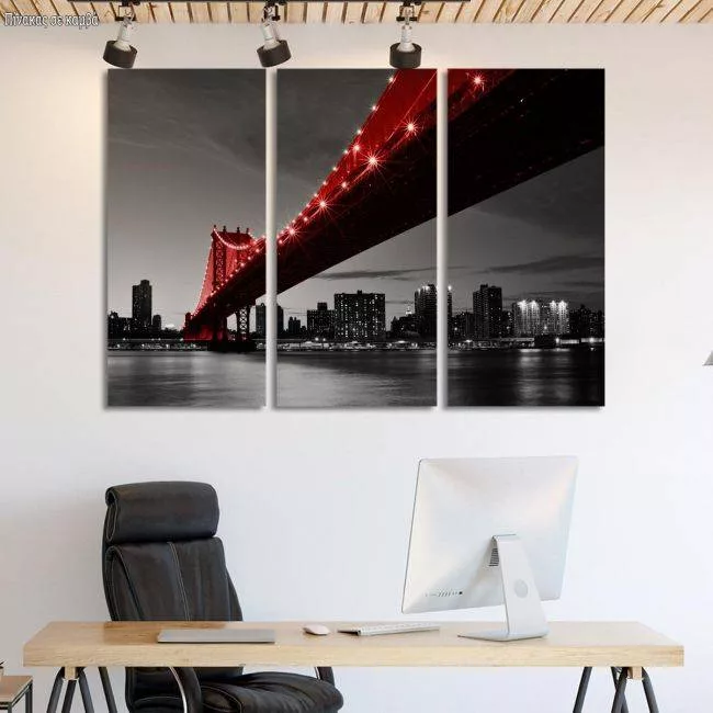 Canvas print Manhattan bridge, Red Manhattan bridge