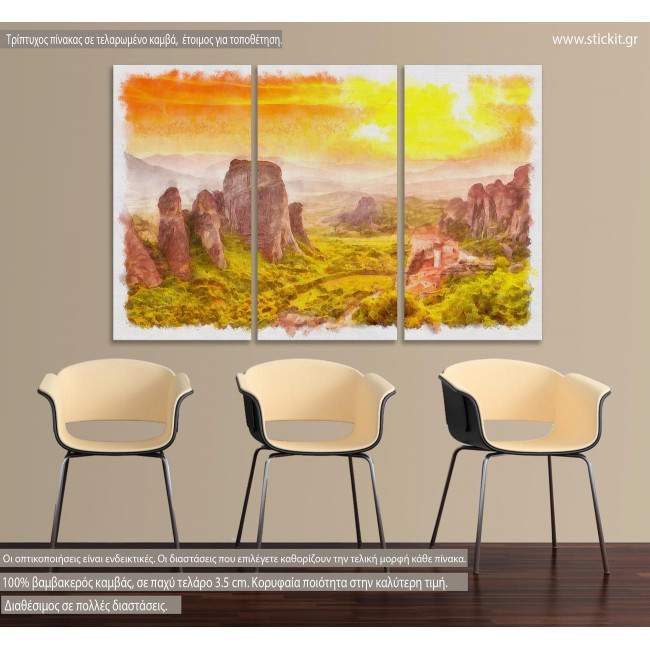 Canvas print Meteora at sunset watecolor, 3 panels