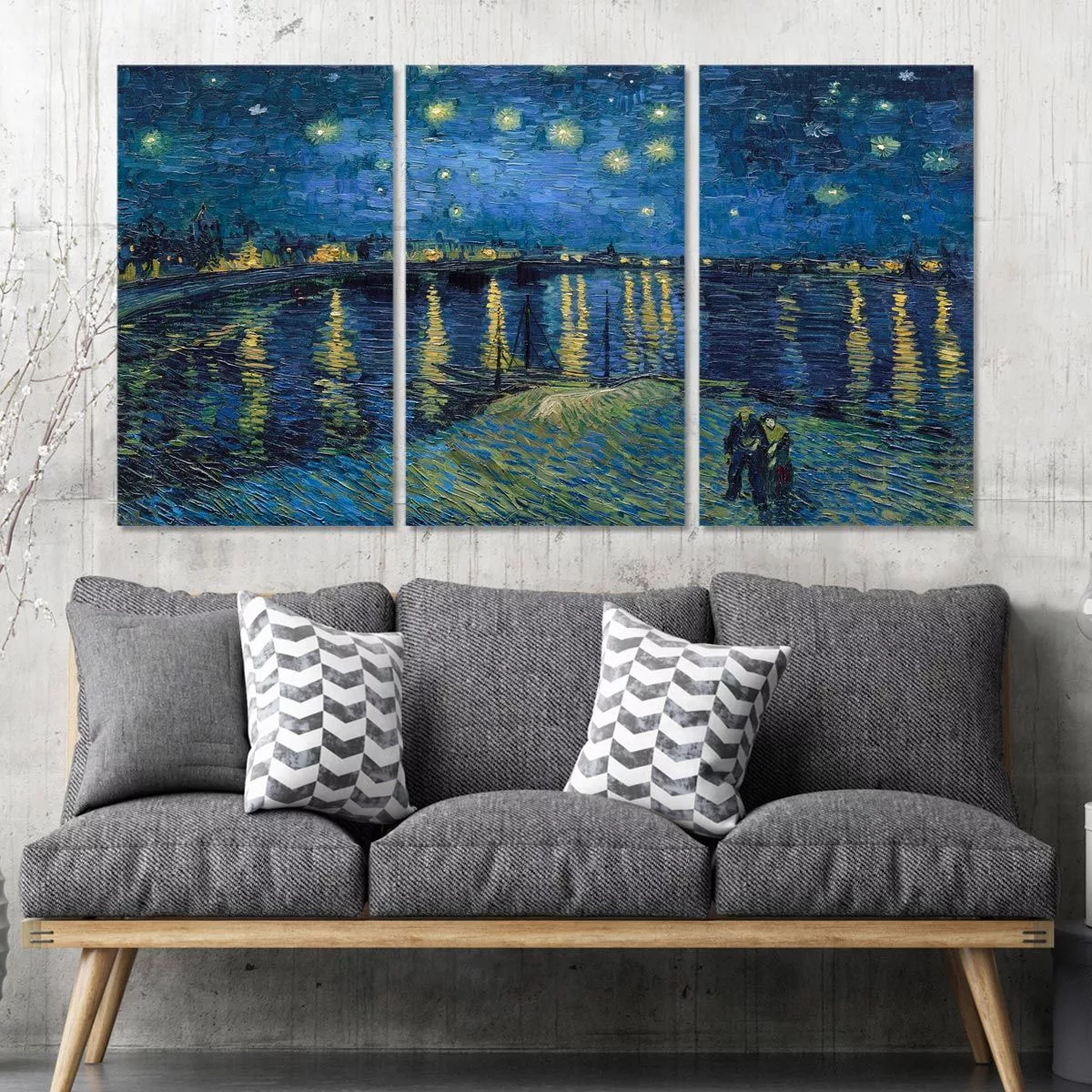 Canvas print Starry night over the Rhone, Vincent van Gogh, 3 panels panoramic