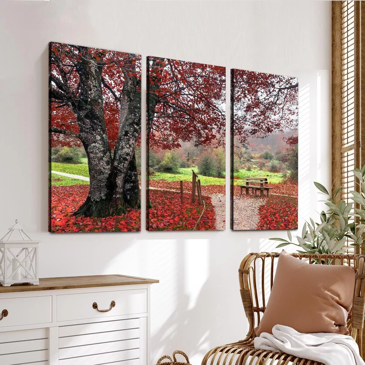 Canvas print Red leaves, 3 panels
