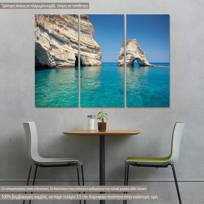 Canvas print Rock formations and sea caves in Milos, 3 panels