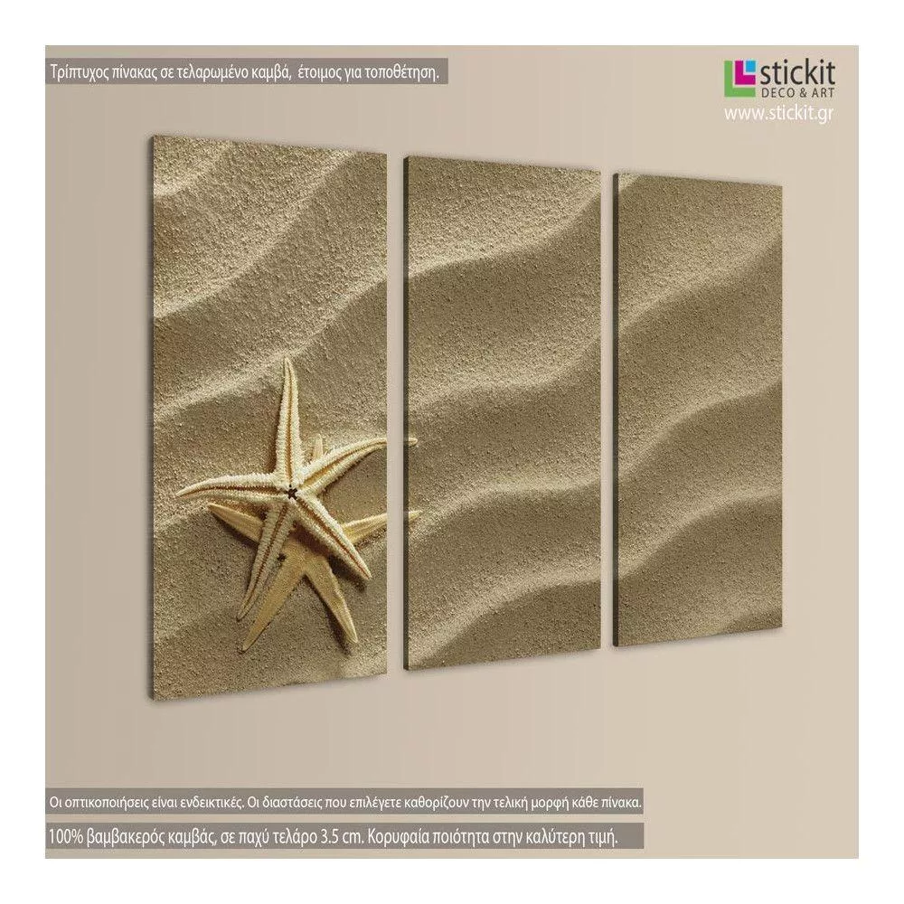Canvas print Starfish in the sand, 3 panels