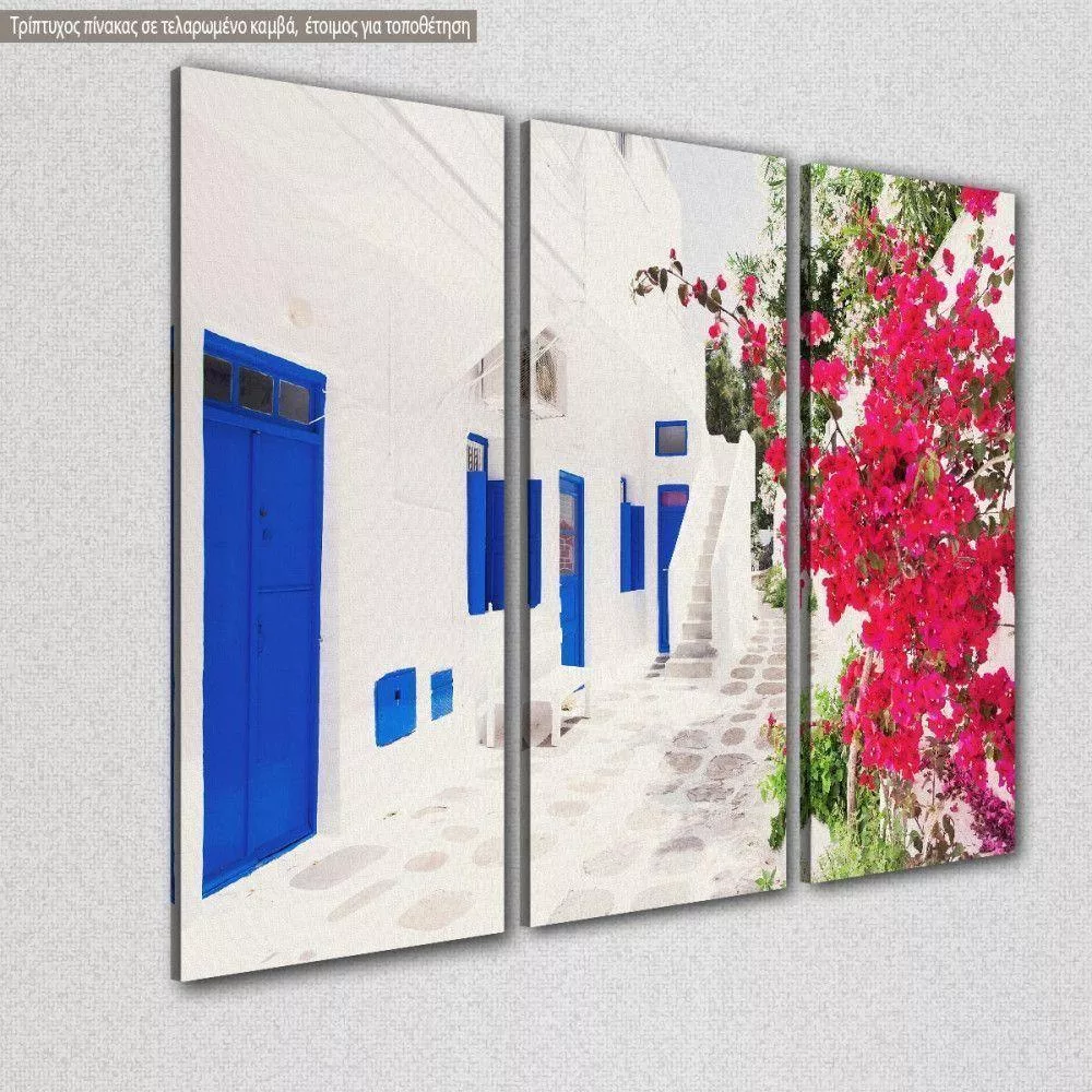 Canvas print Mykonos, Street in Mykonos town, 3 panels