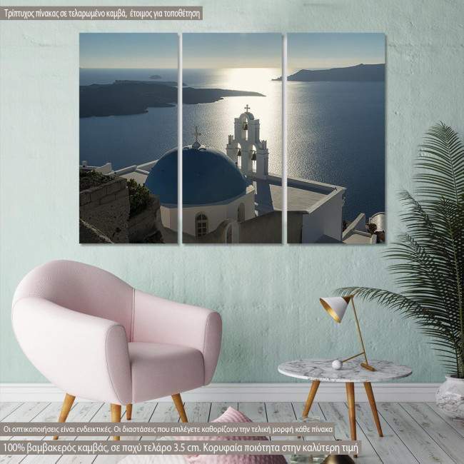 Canvas print Santorini, Three bells of Thera, Santorini, 3 panels