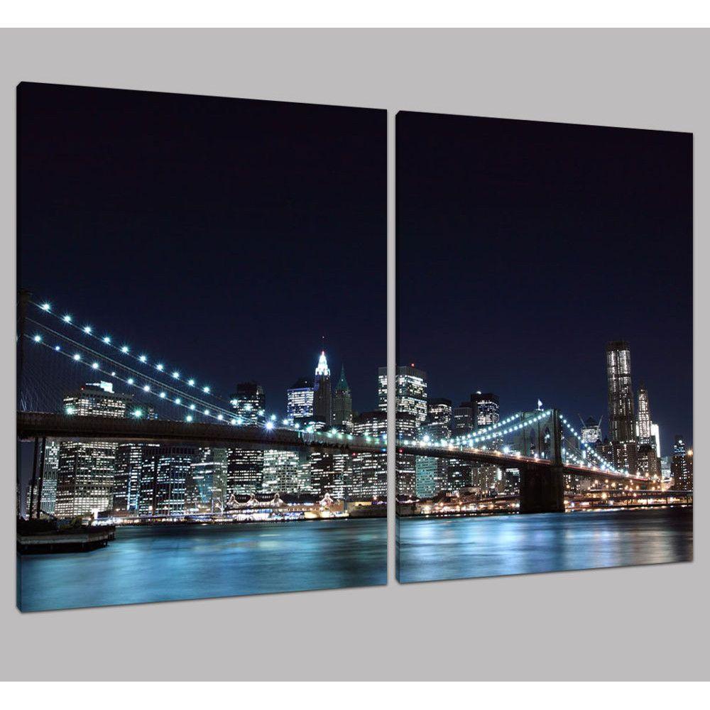 Canvas print Brooklyn bridge dark blue, two panels