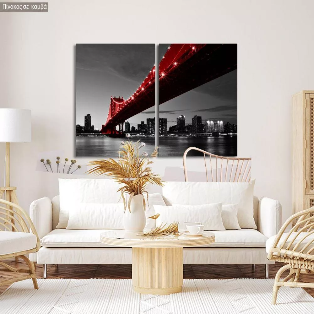 Canvas print Manhattan bridge, Red Manhattan bridge