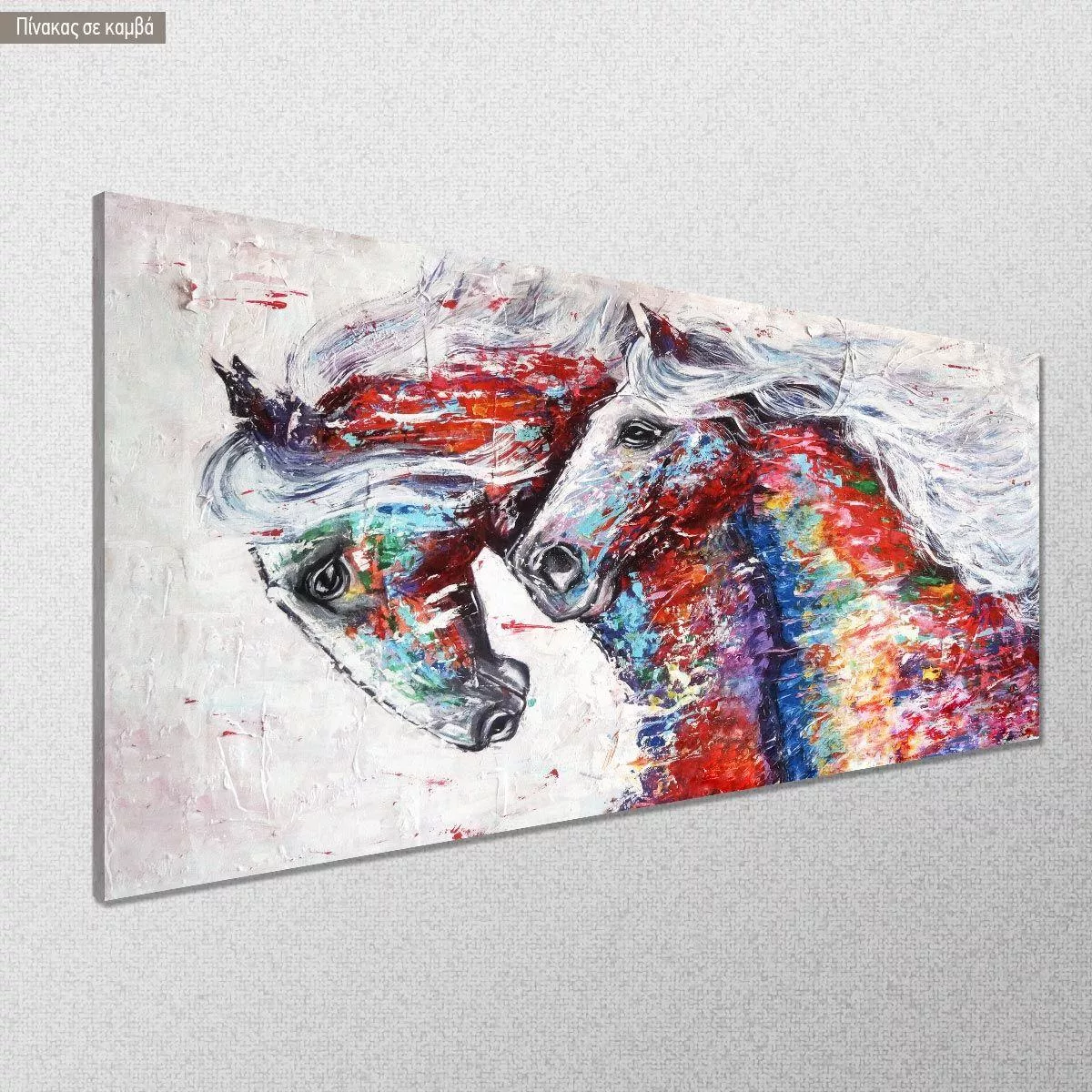Canvas print Running horses in abstract colors, panoramic