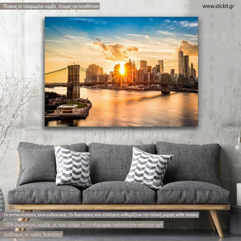 Canvas printNew York bridge, Brooklyn bridge and the Manhattan skyline