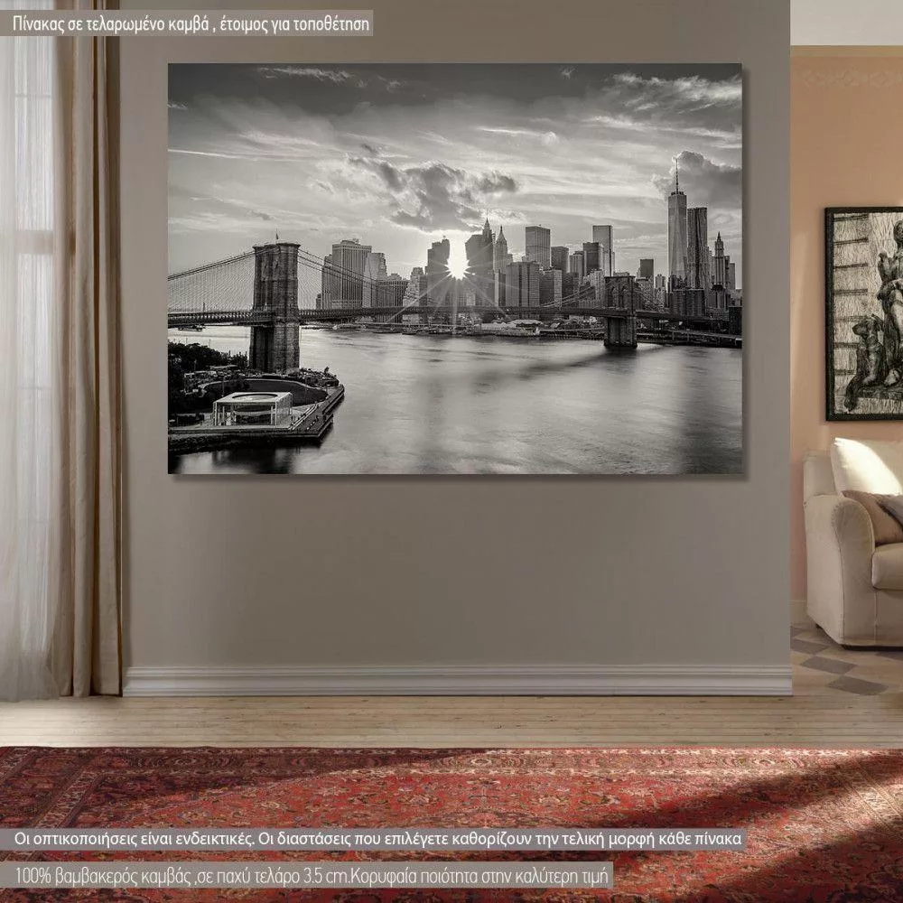 Canvas print Brooklyn bridge and the Manhattan skyline grayscale