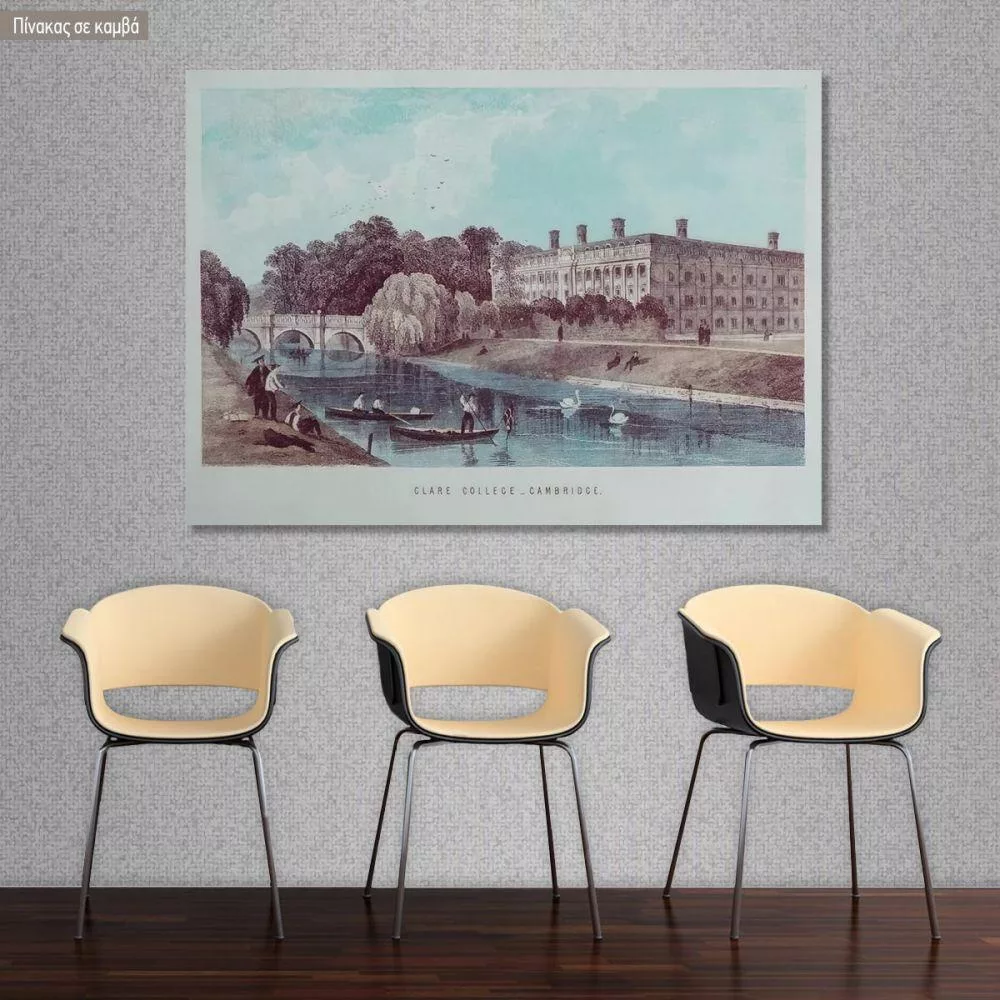 Canvas print Clare college, Cambridge an old print