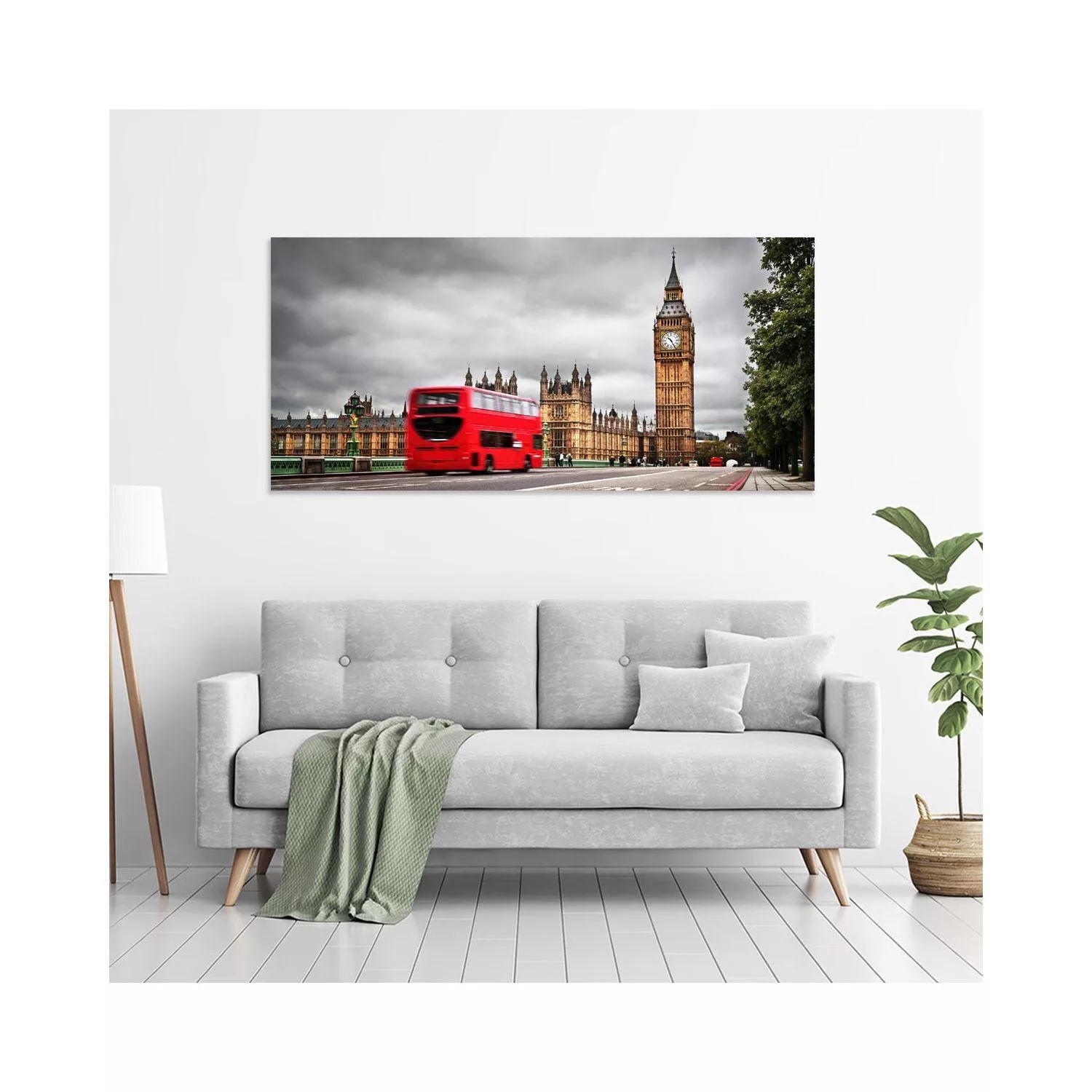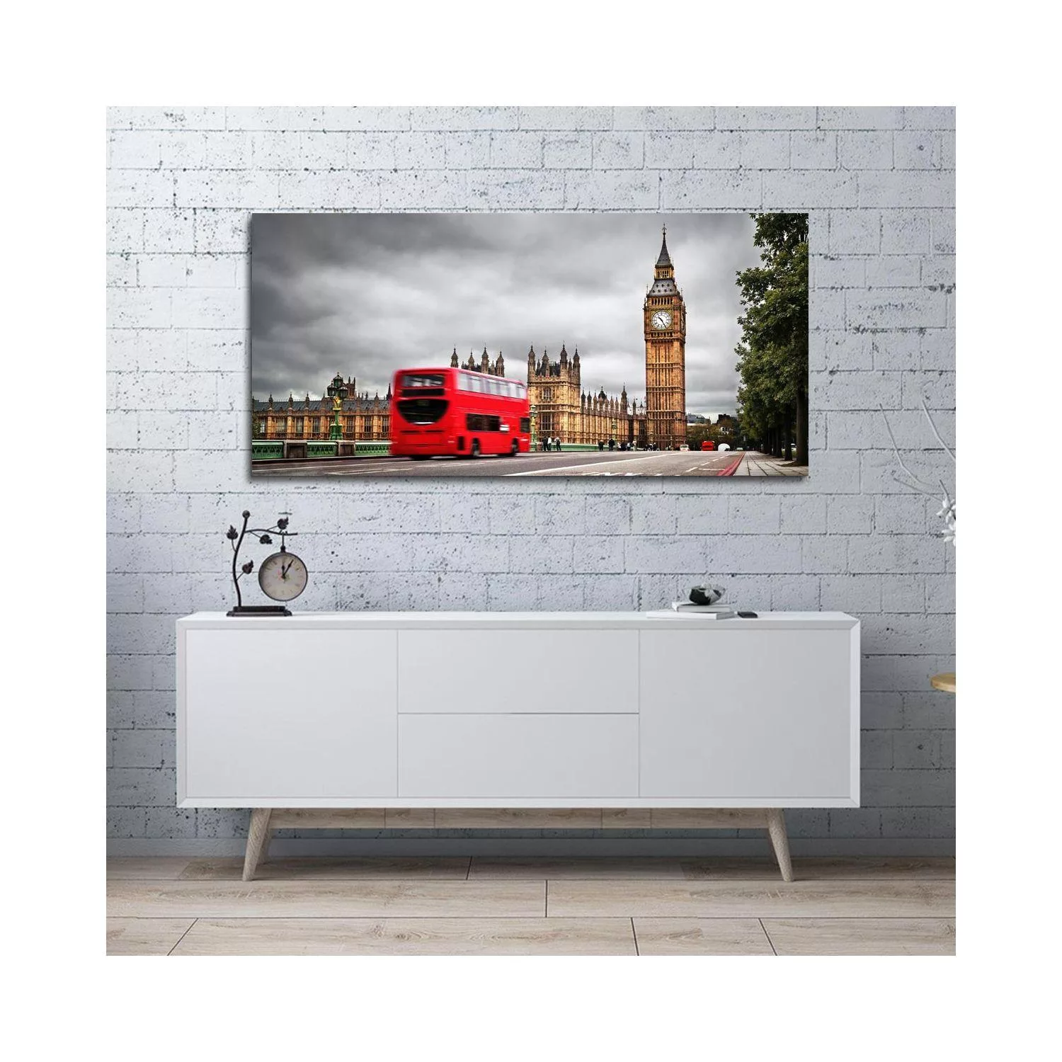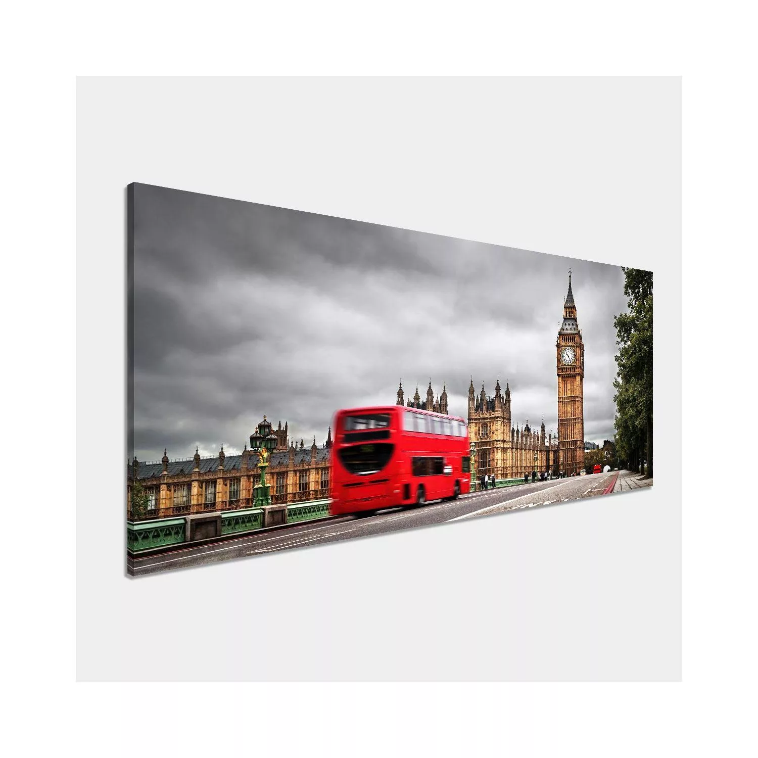 Canvas print Big Ben with red bus, panoramic