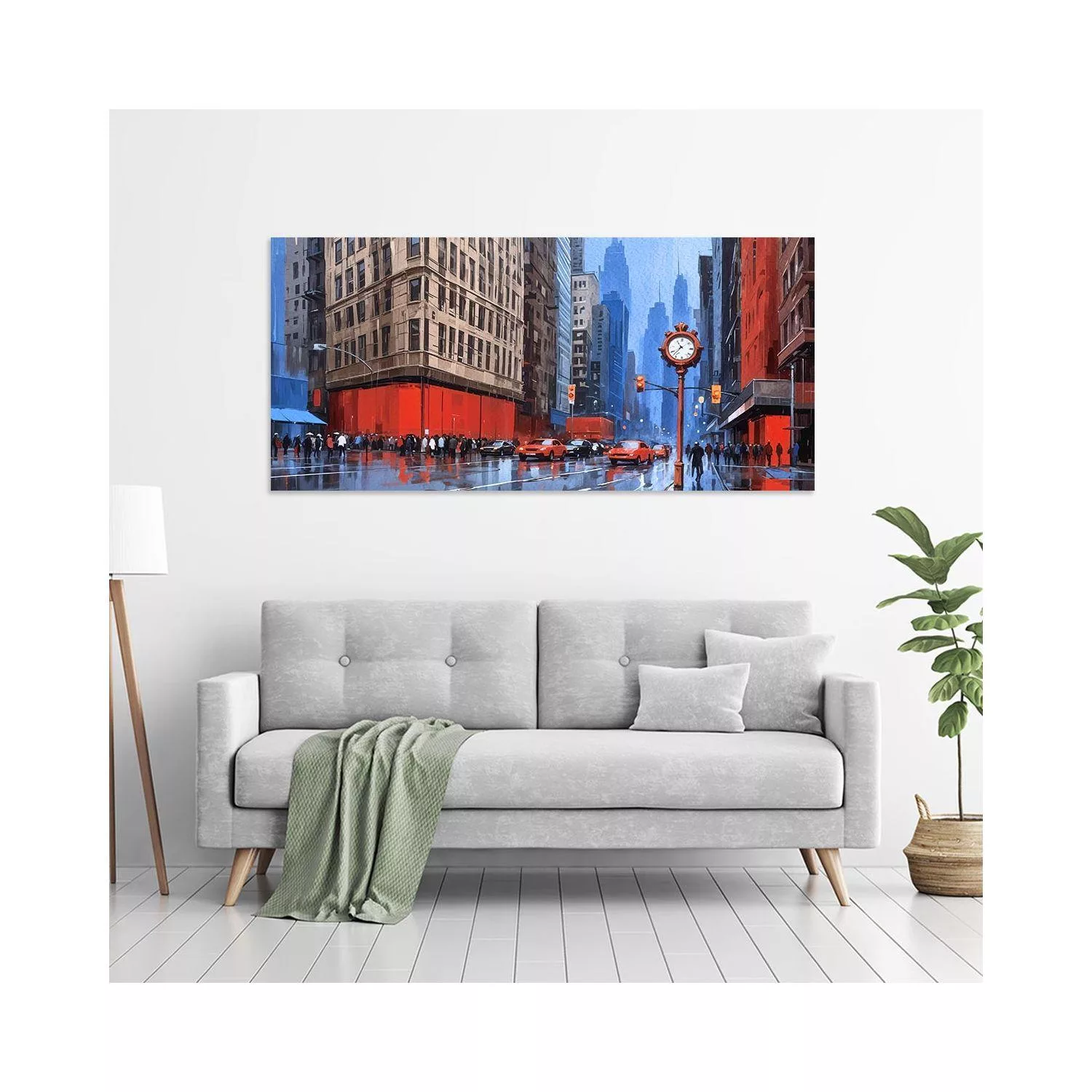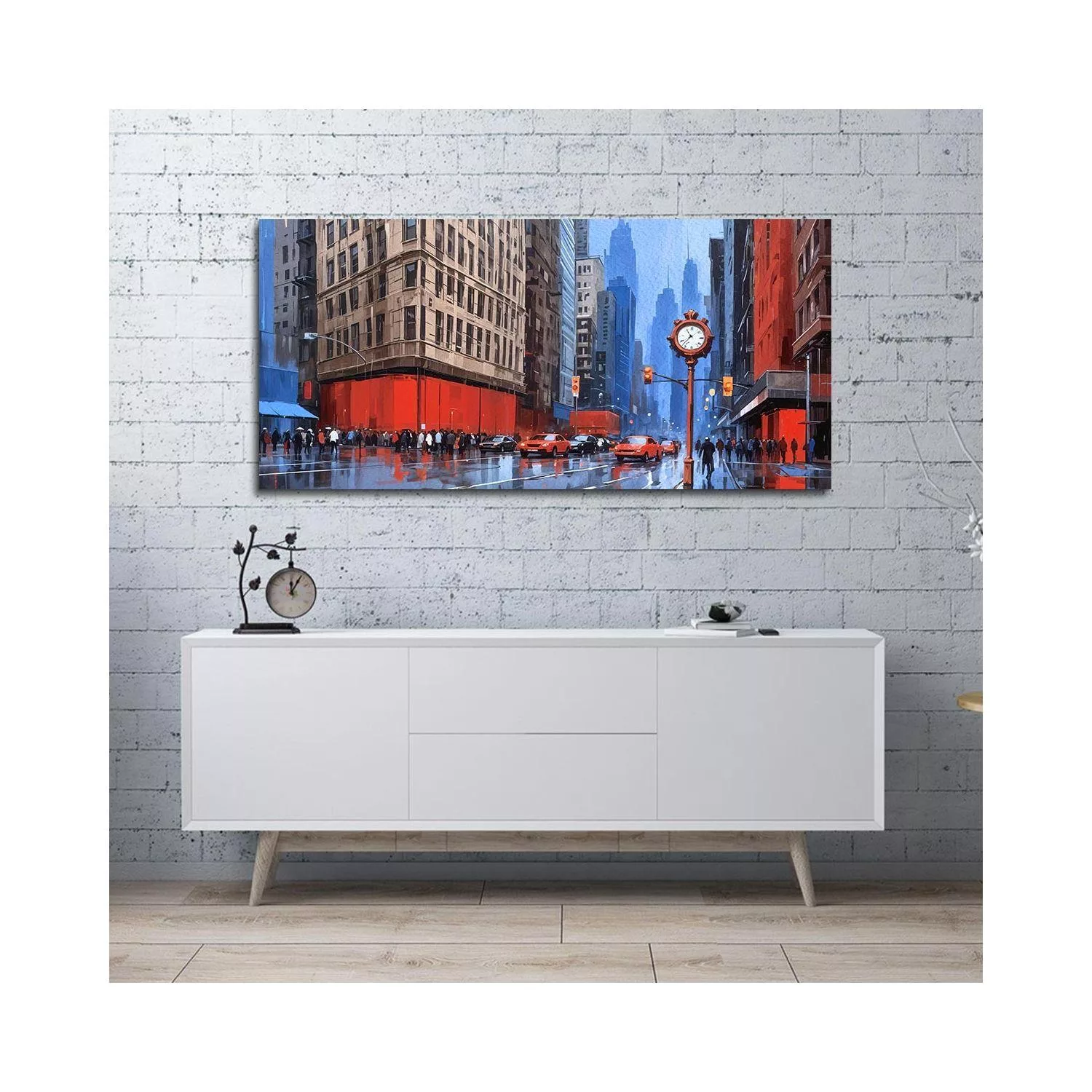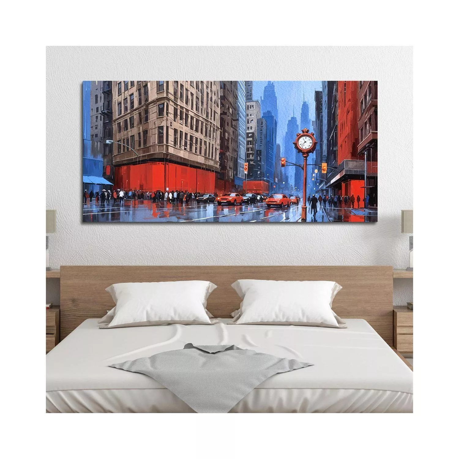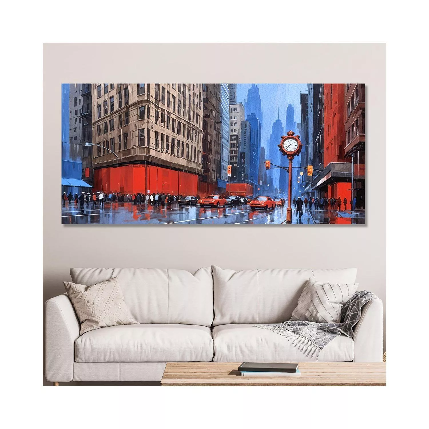 Canvas print City in blue and red, panoramic