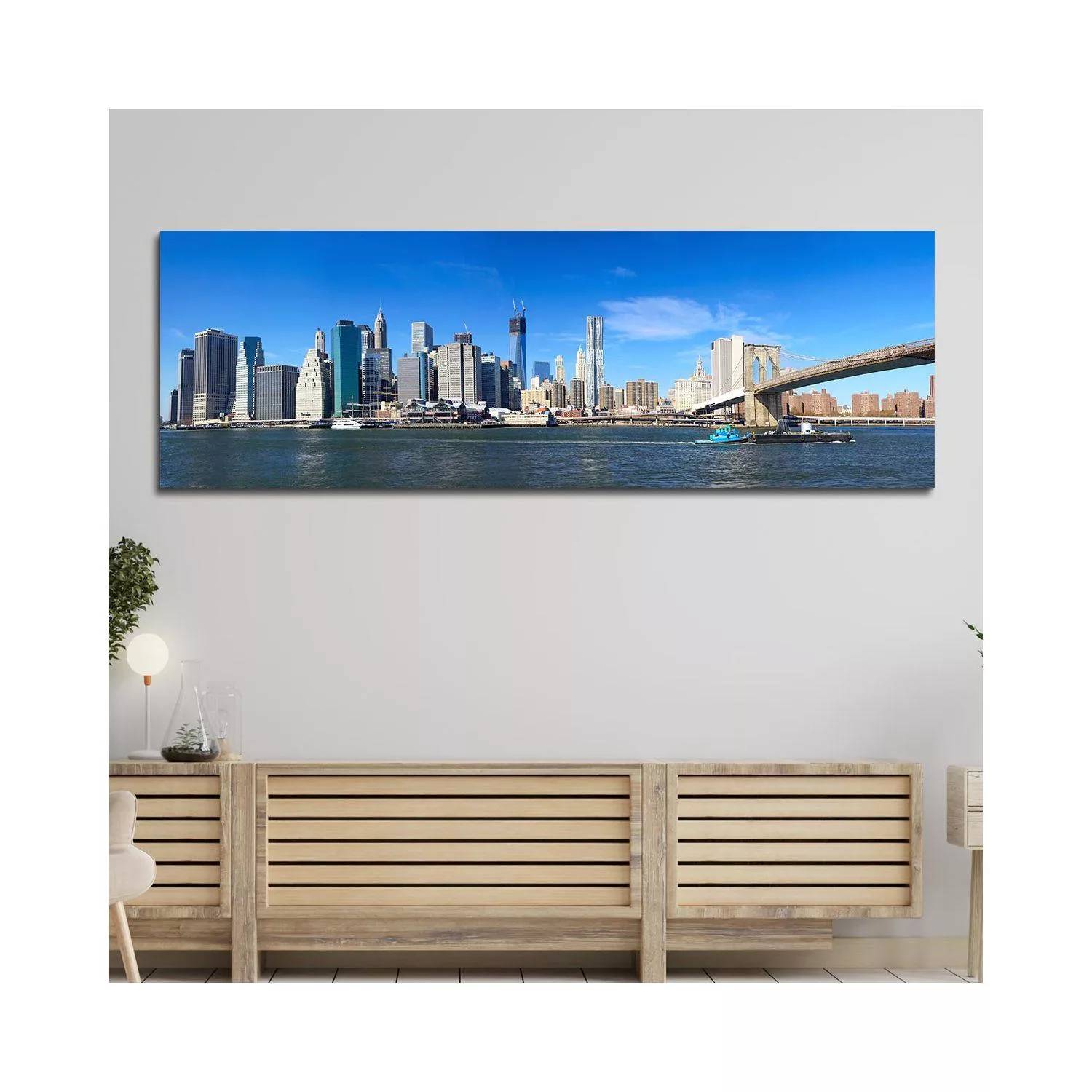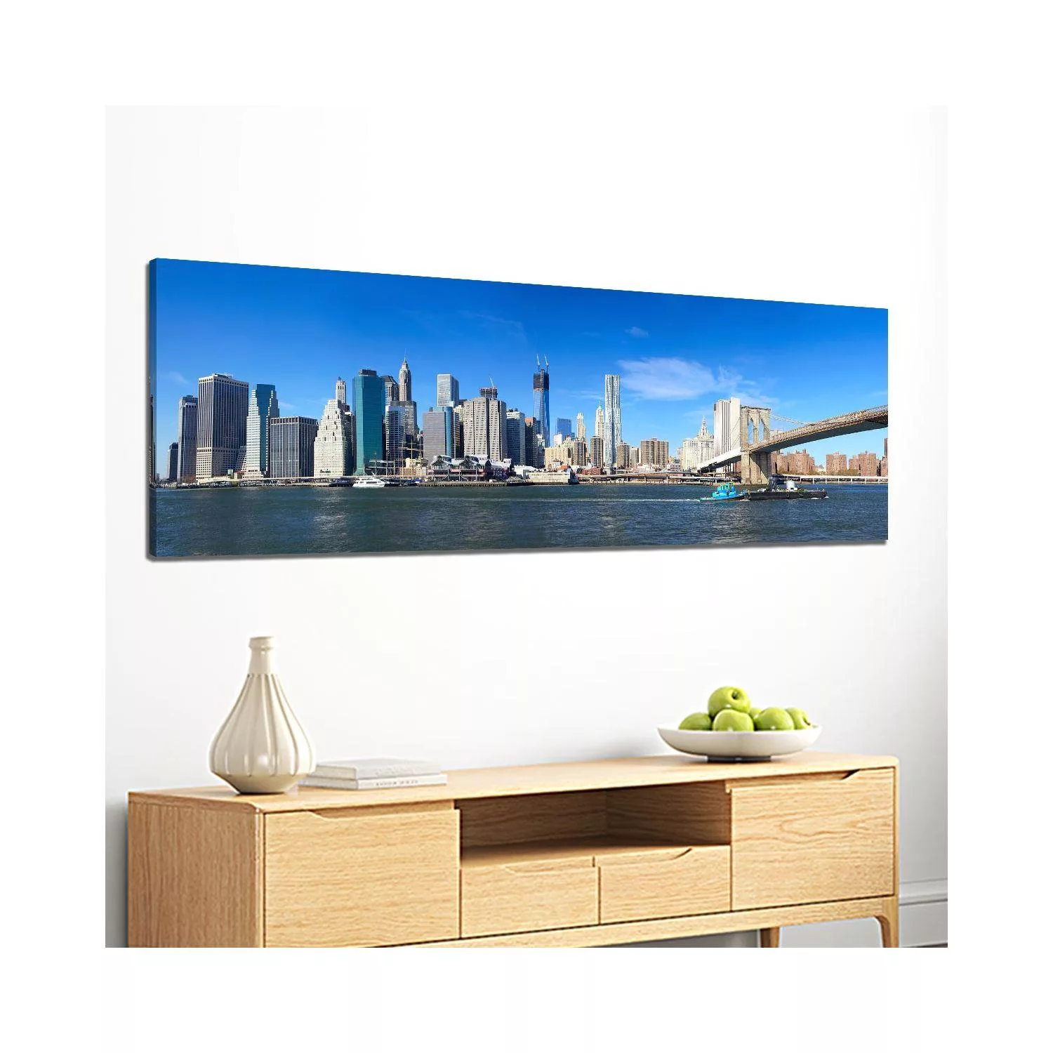 Canvas print Manhattan and Brooklyn bridge I, panoramic
