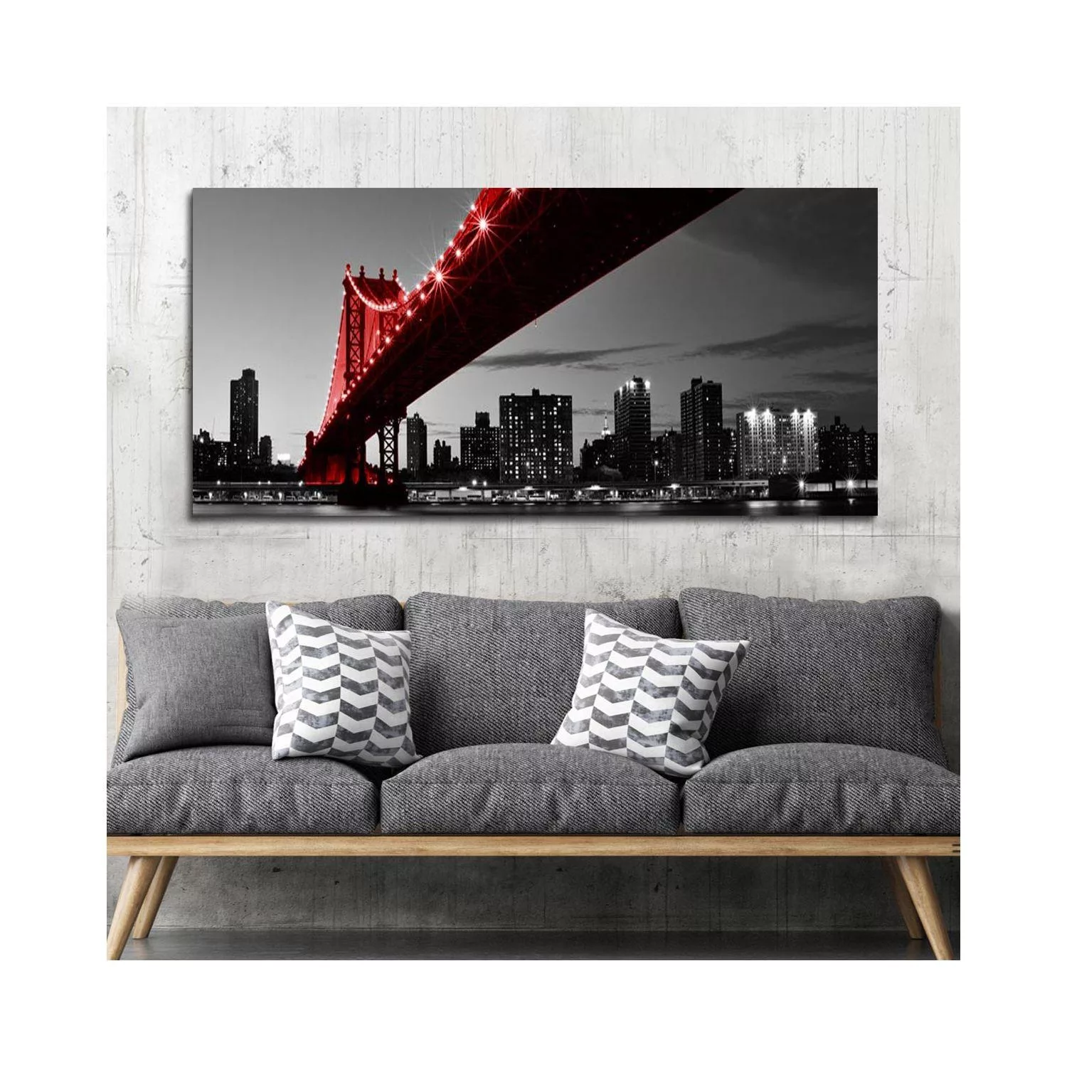Canvas print Red Manhattan bridge panoramic Framed canvas View 3