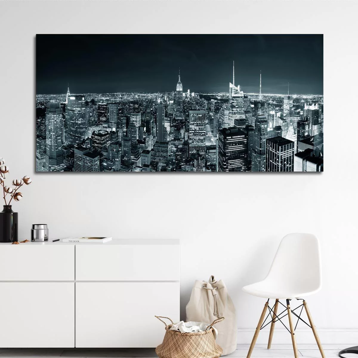 Canvas print Manhattan skyline at night, panoramic