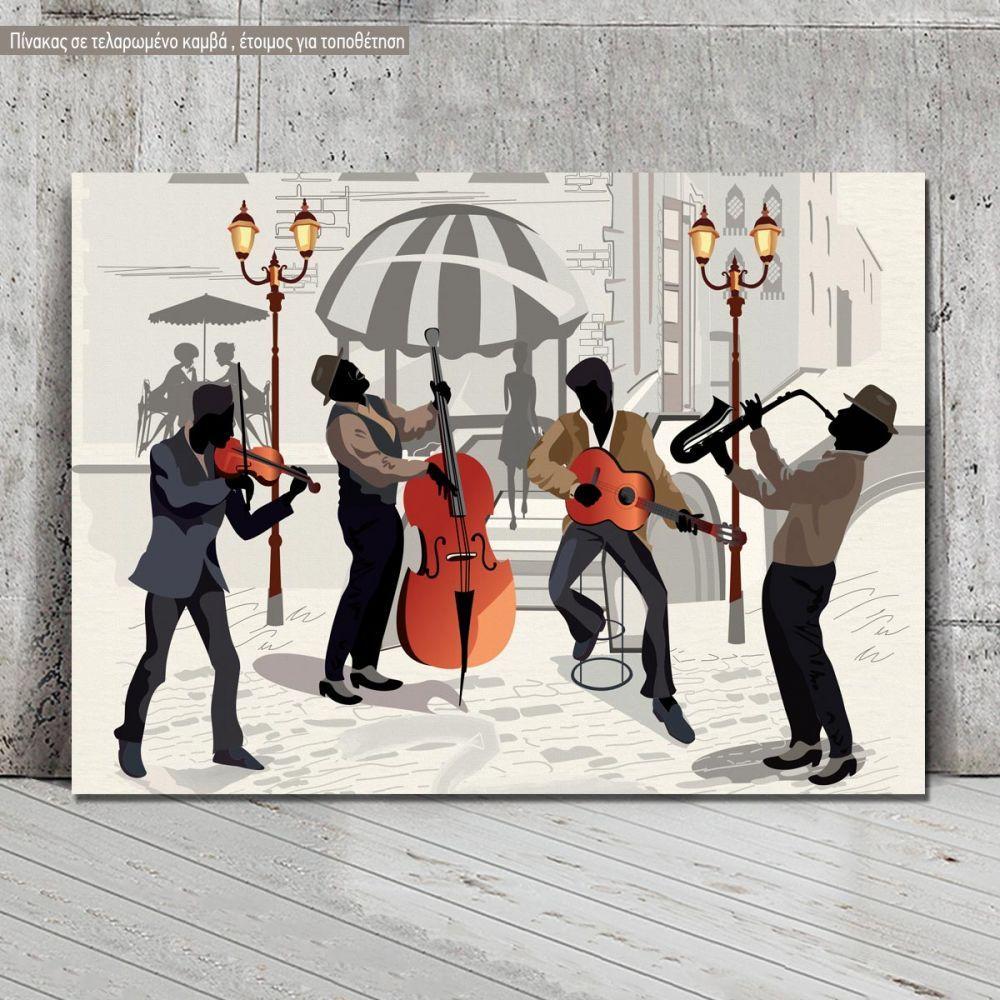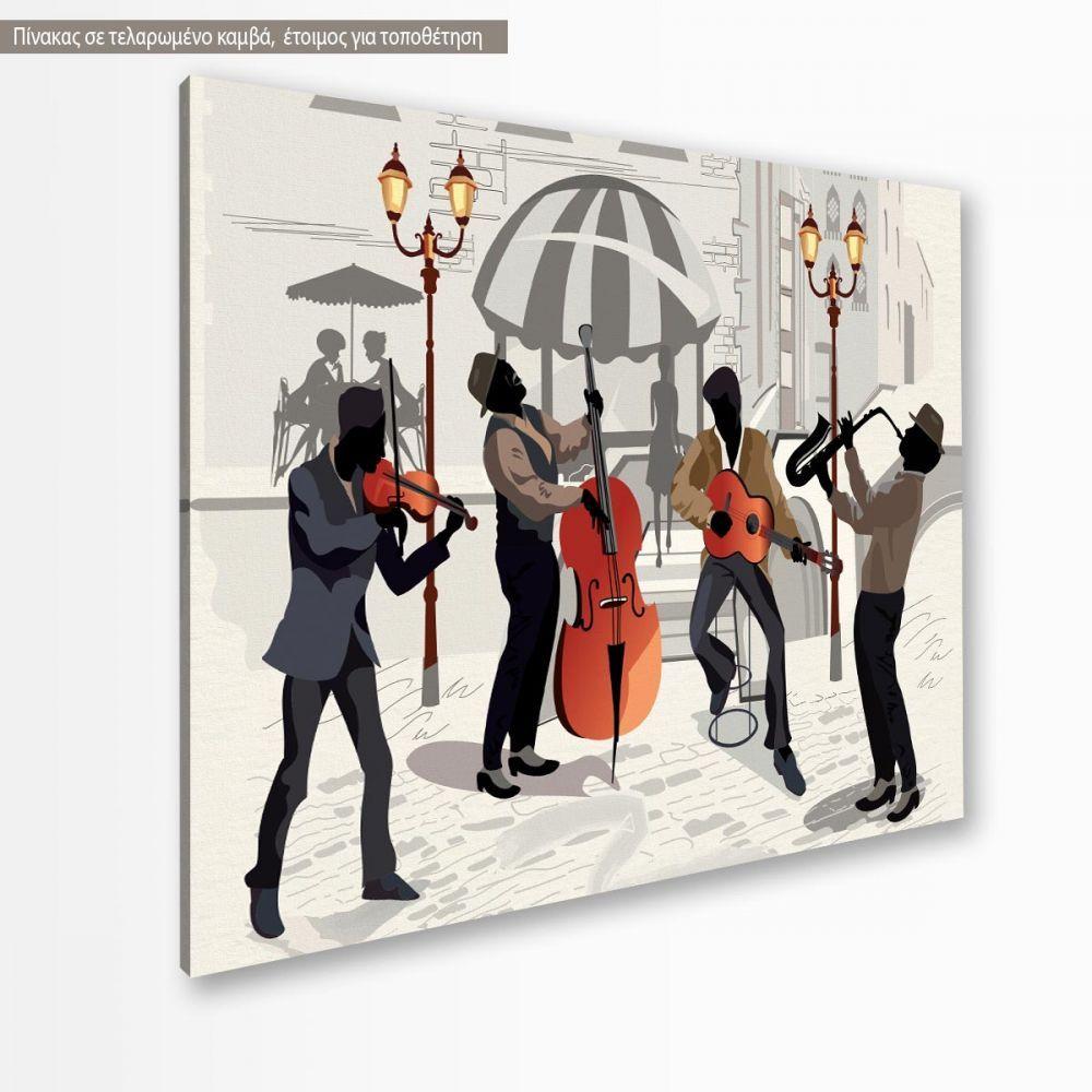 Canvas print Street cafe with musicians