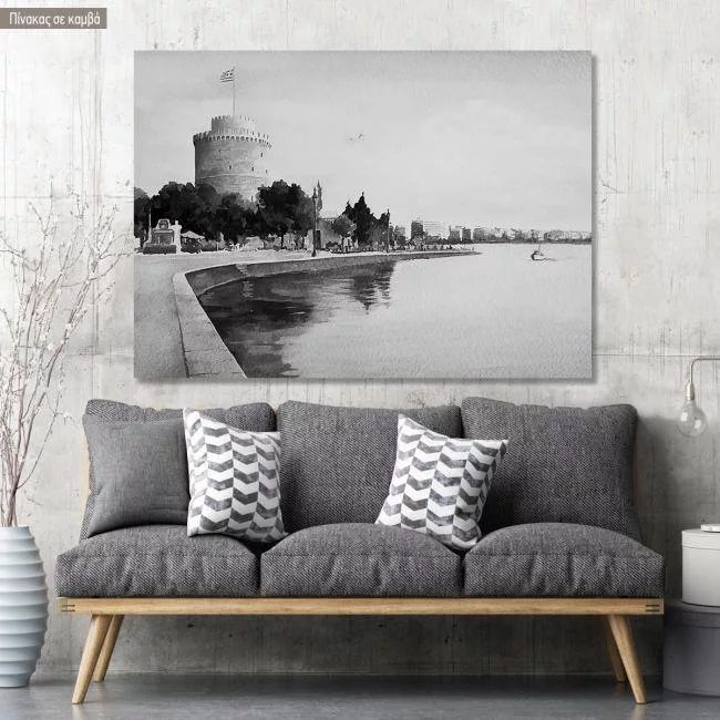 Canvas print Thessaloniki watercolors grayscale