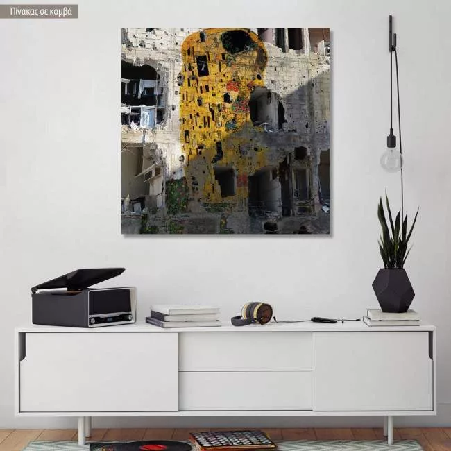 Canvas print A kiss in ruins reart (original Klimt G), reproduction