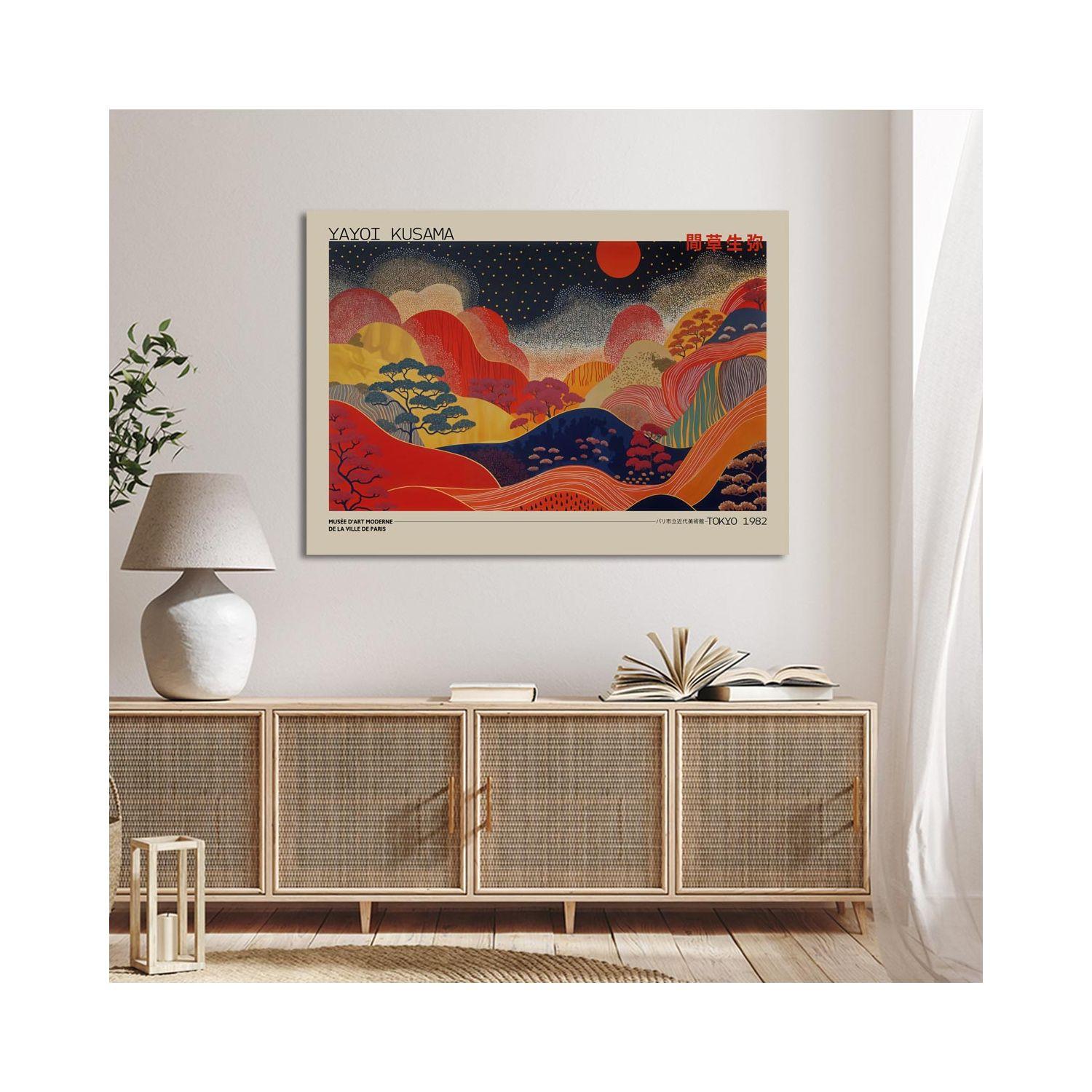 Canvas print Mountains and red sun, reart (original YAYOI Kusama)