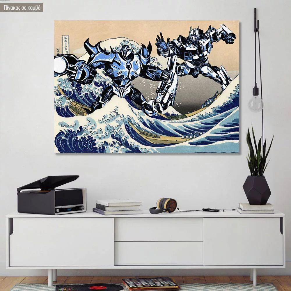 Canvas print Transformers and the great wave reart, (original Hokusai)