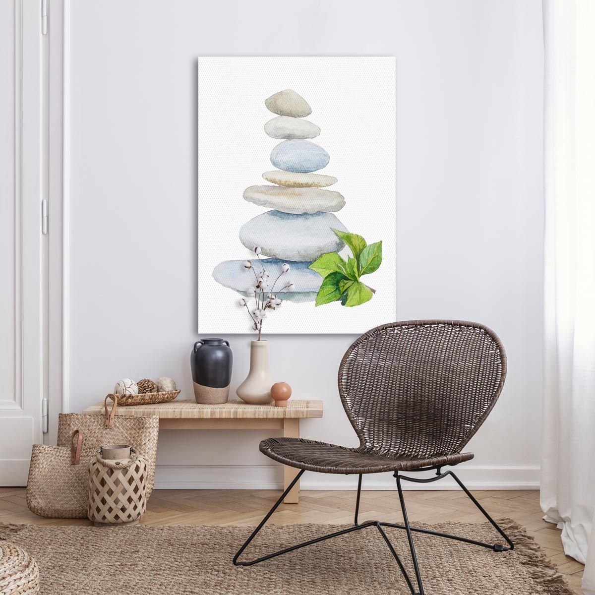 Canvas print Balanced stones in watercolor