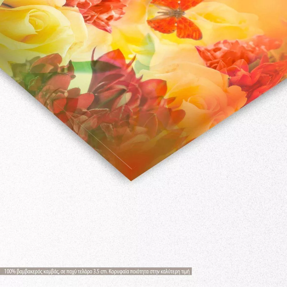Canvas print Butterfly and yellow roses