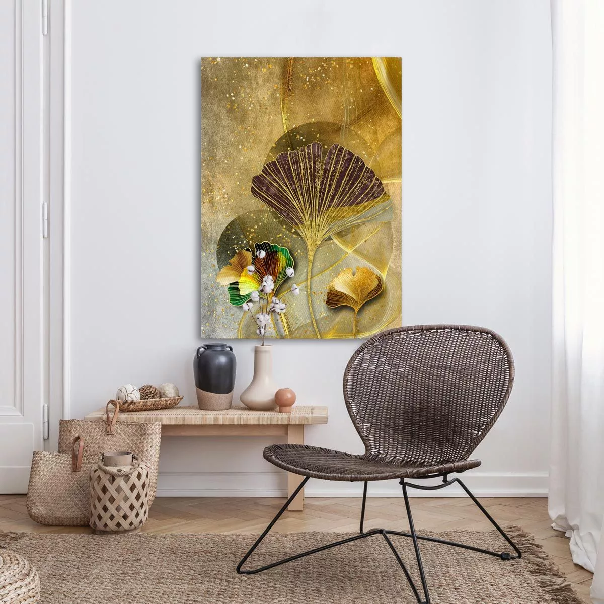 Canvas print Golden lines and feathers I