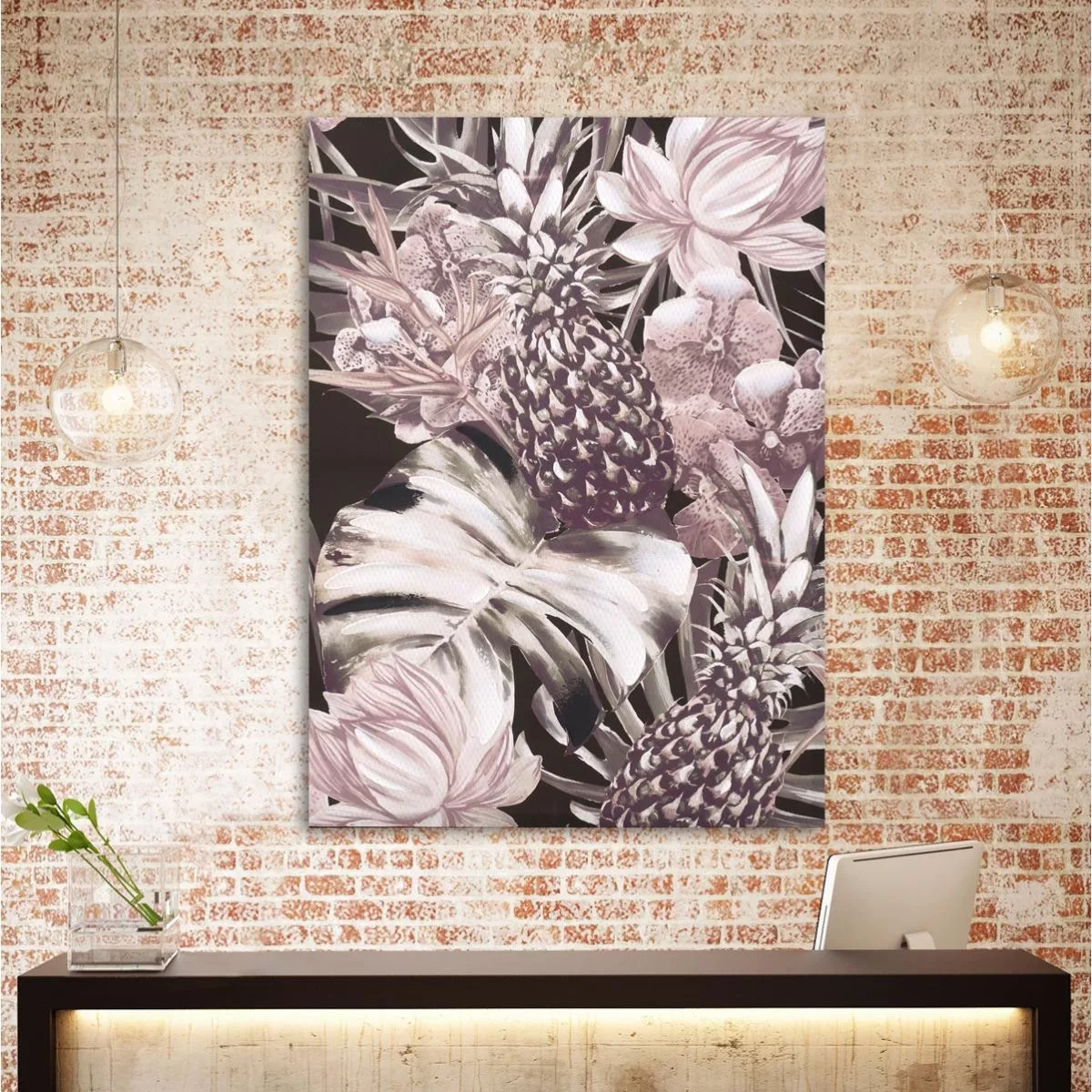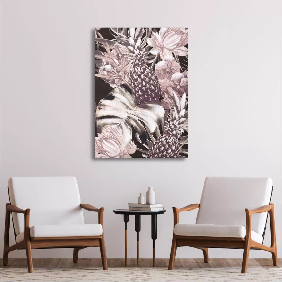 Canvas print Leaves, flowers and pineapples