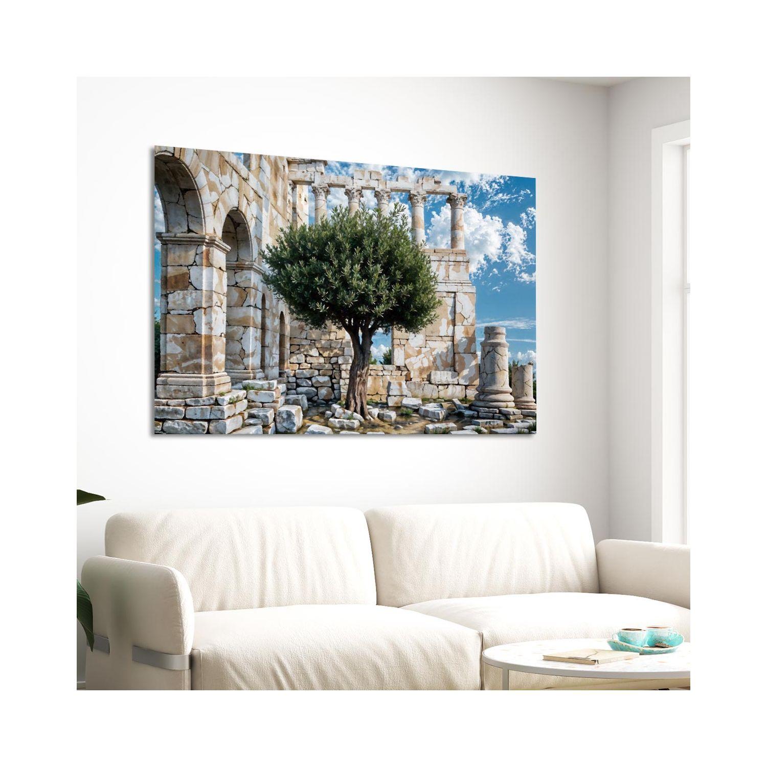 Canvas print Olive tree with ancient ruins in the background, horizontal