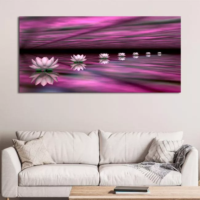 Canvas print Pink Water lilies, panoramic