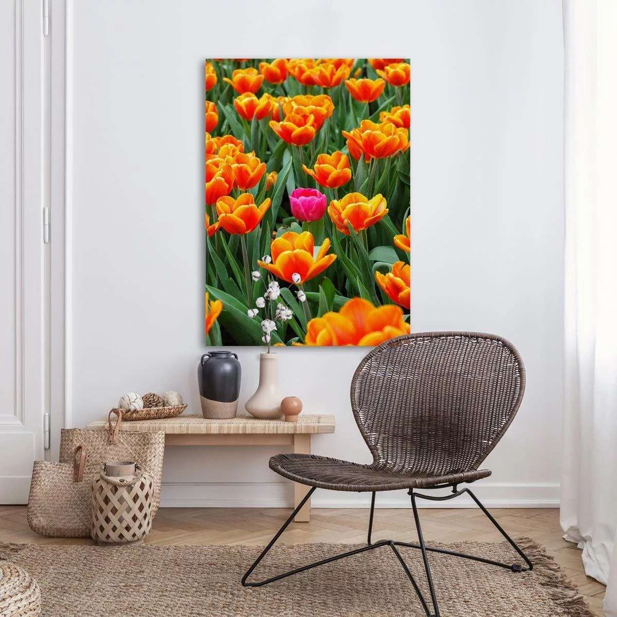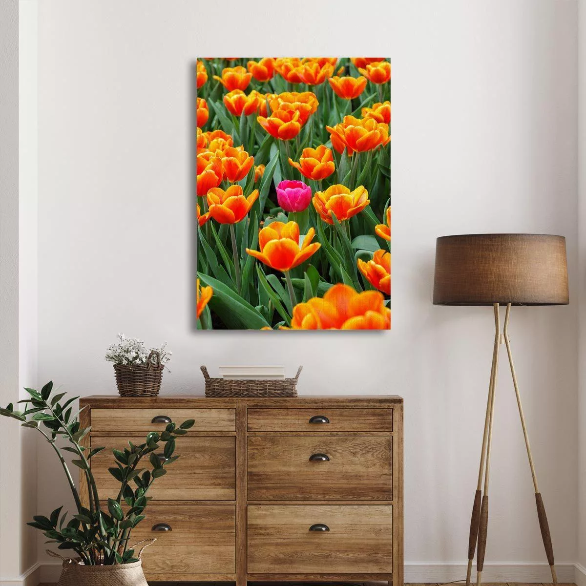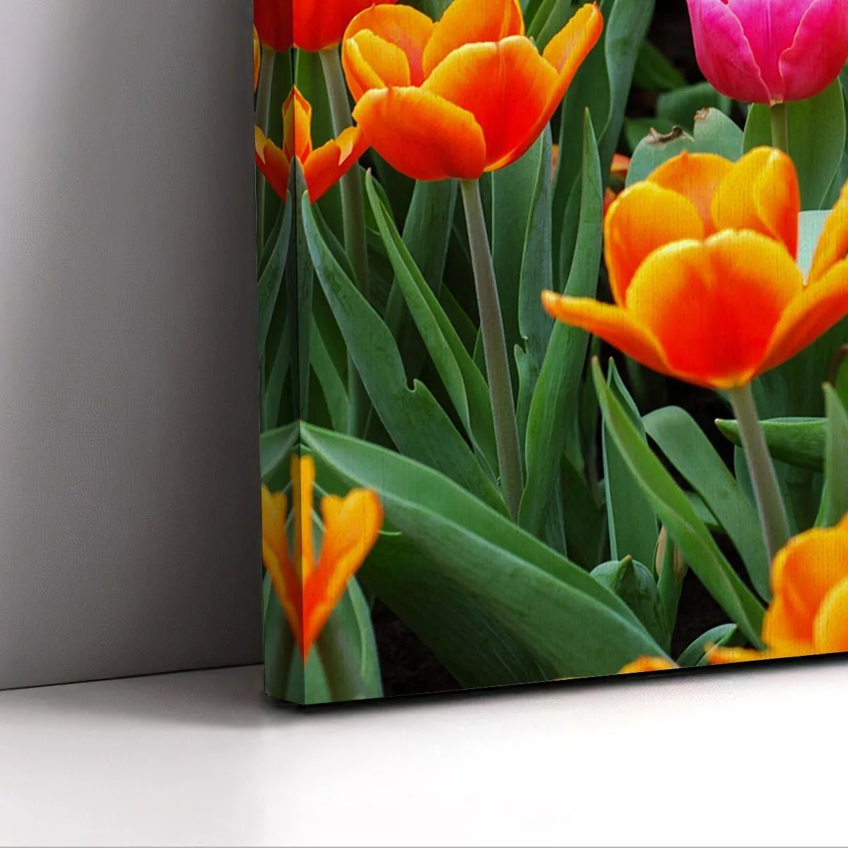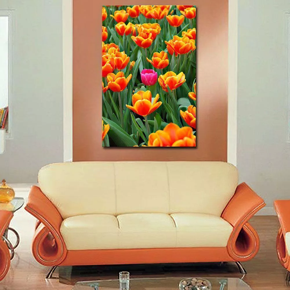 Canvas print Pink tulip between orange