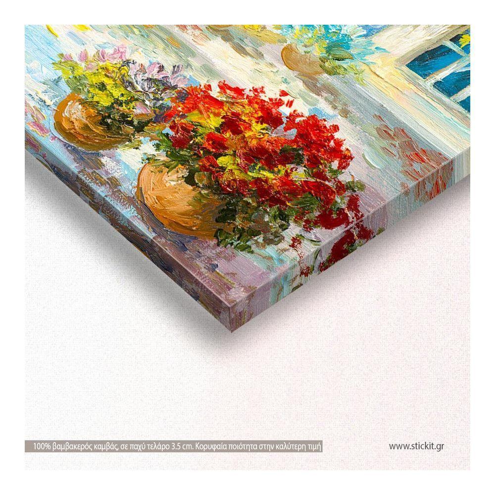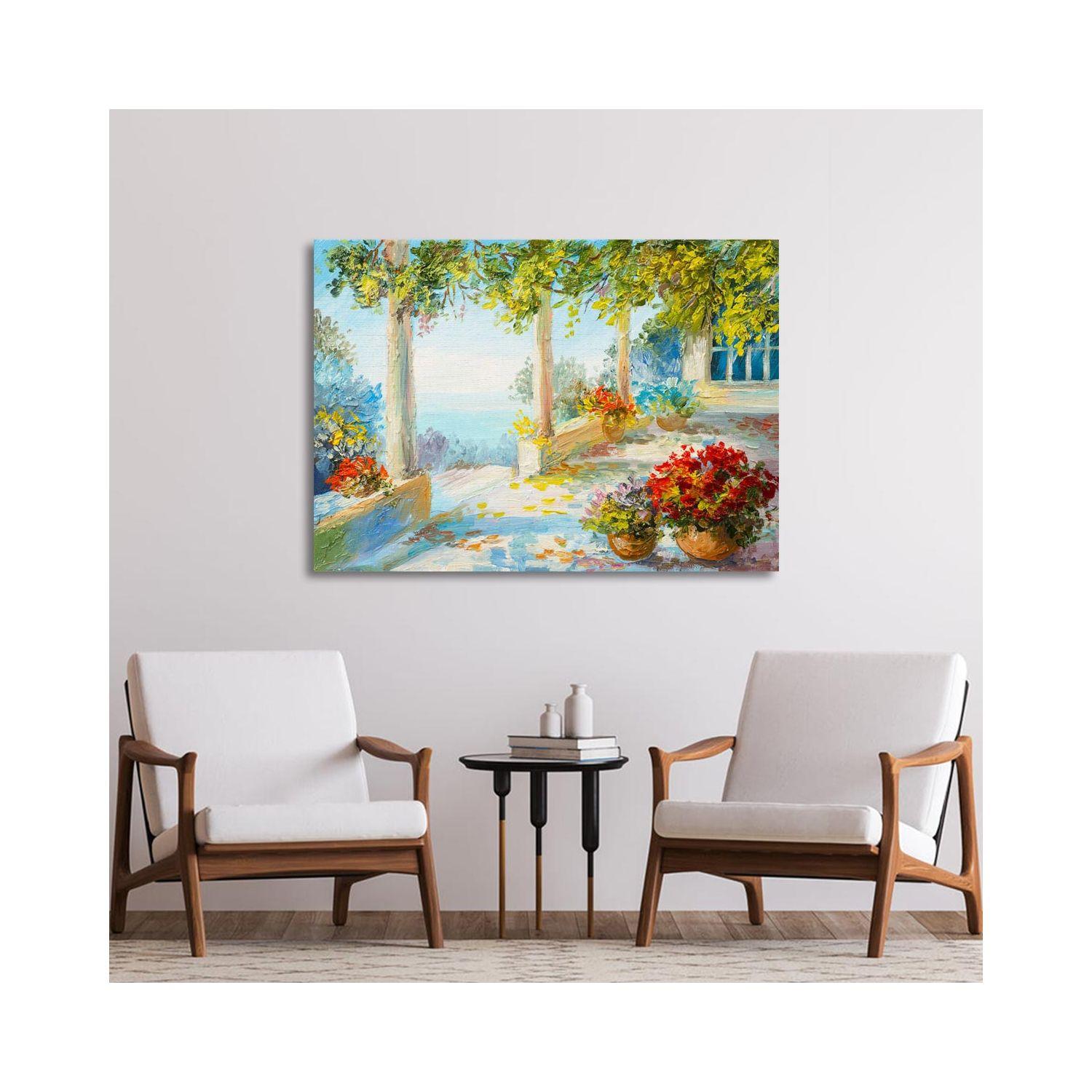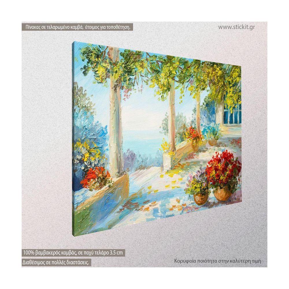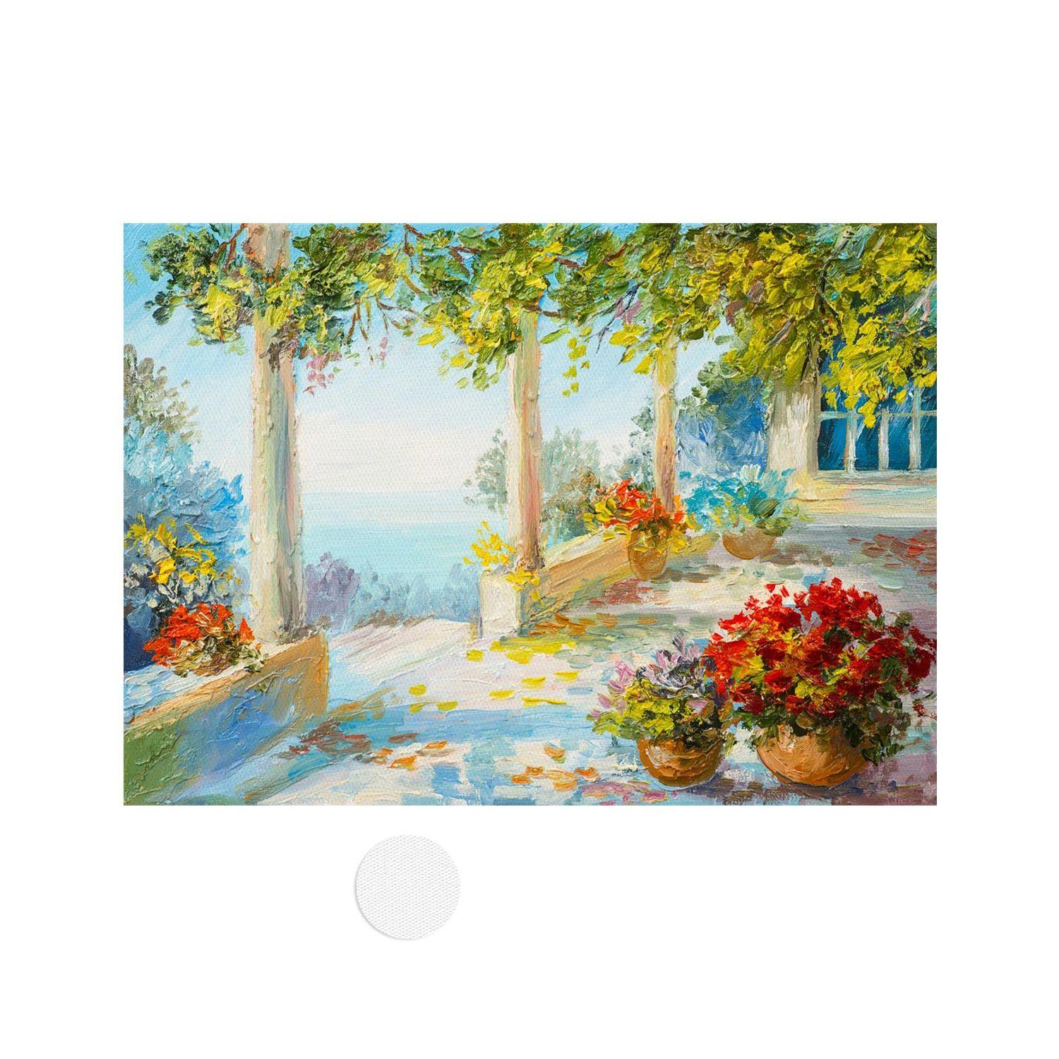 Canvas print Terrace near the sea, flowers
