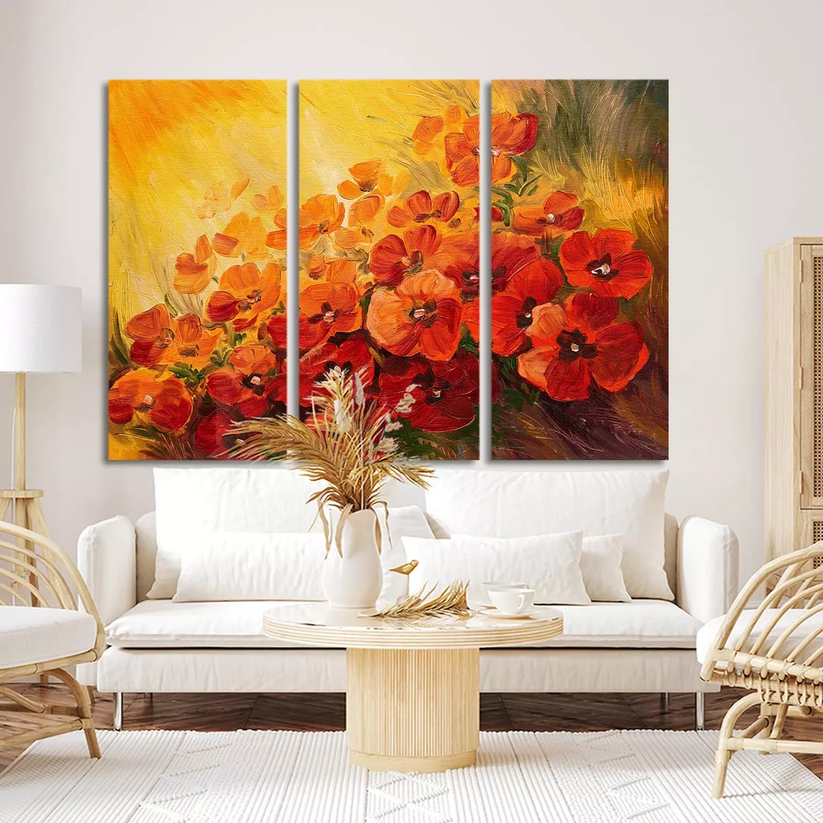 Canvas print Illustration of poppies, 3 panels