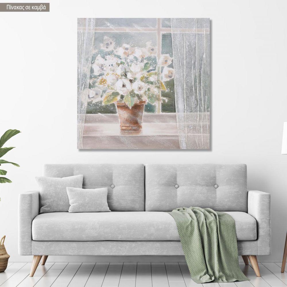 Canvas print White flowers by the window