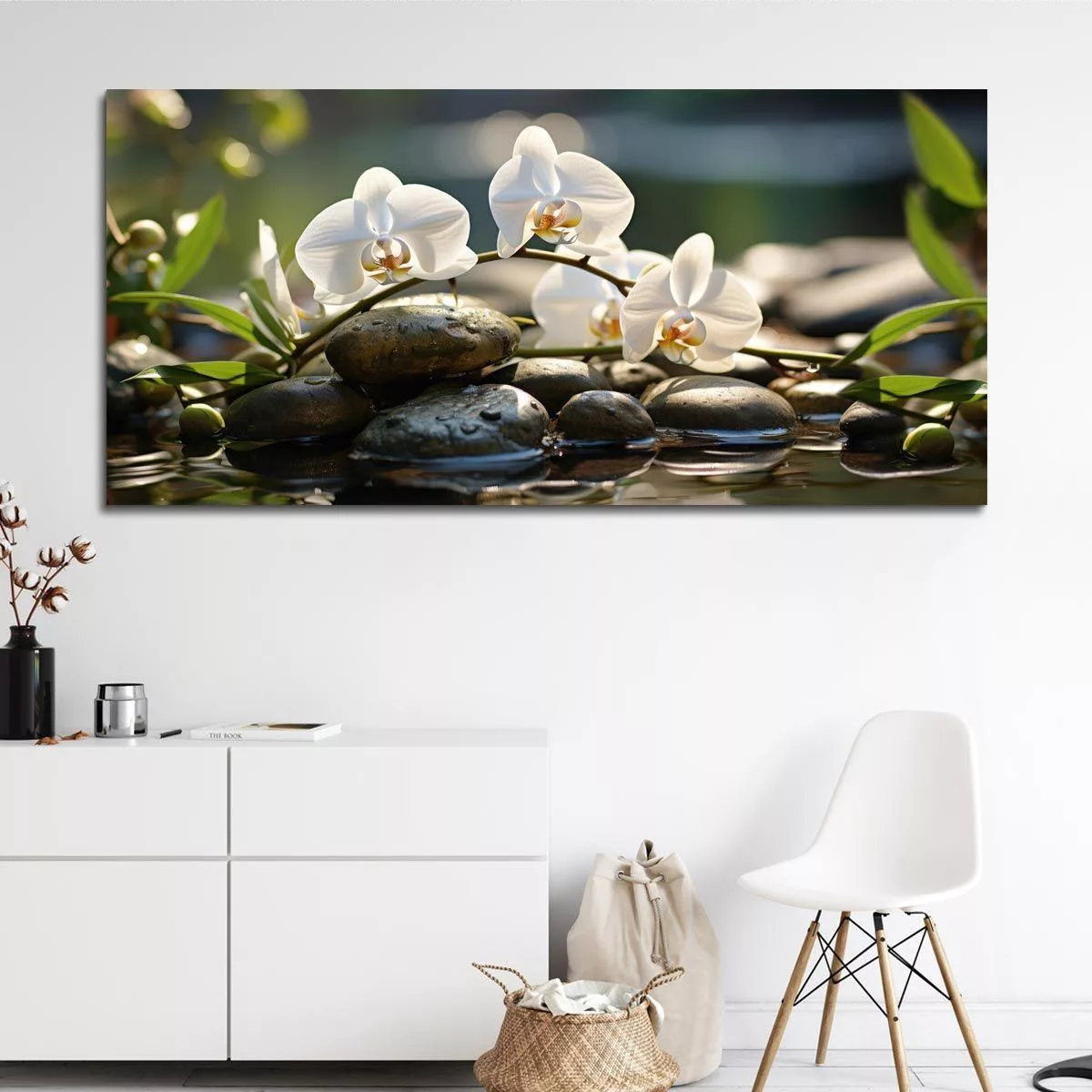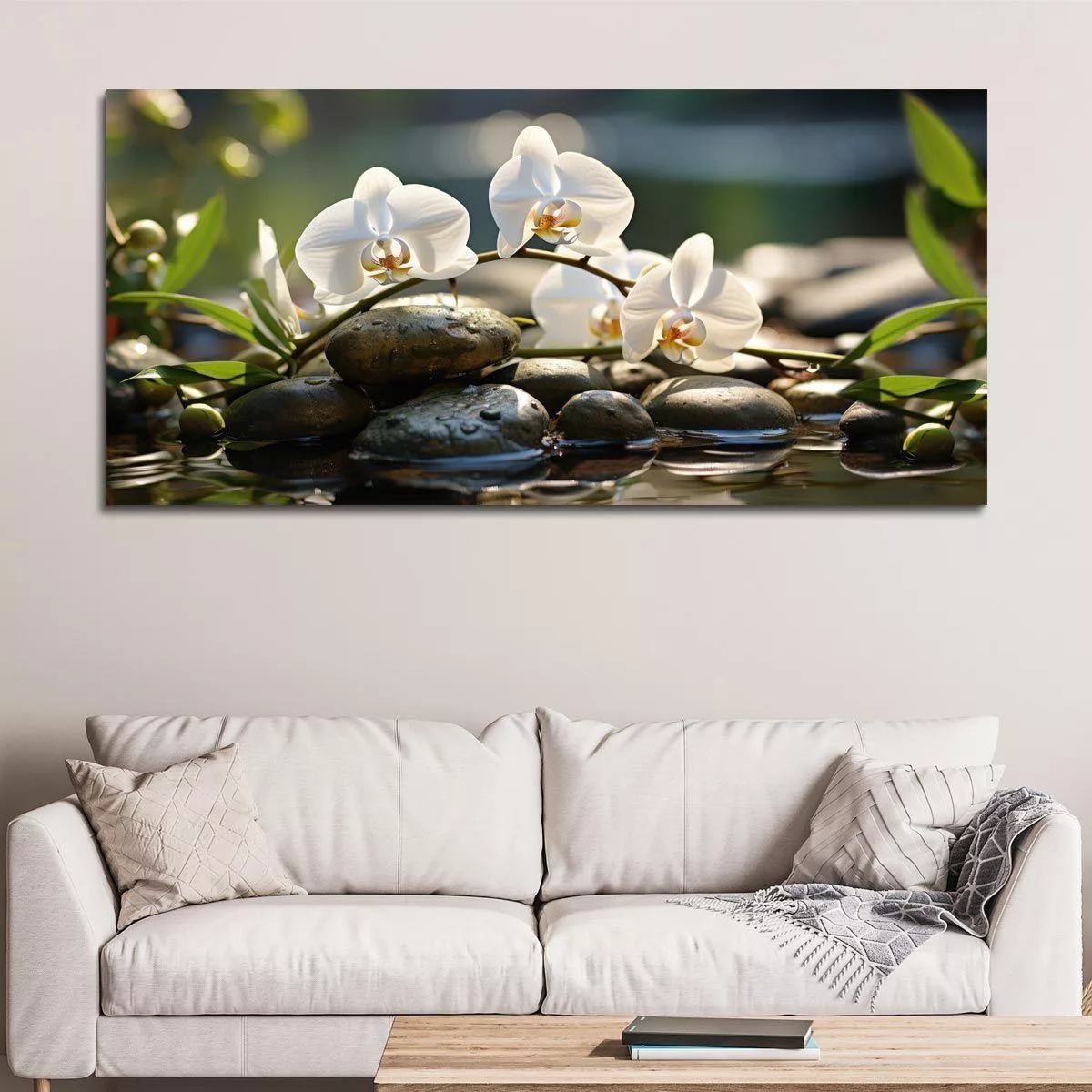 Canvas print White orchids, panoramic