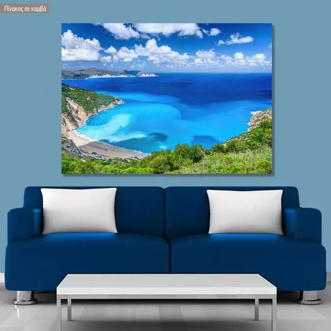 Canvas print Aerial view of Myrtos beach, Kefalonia