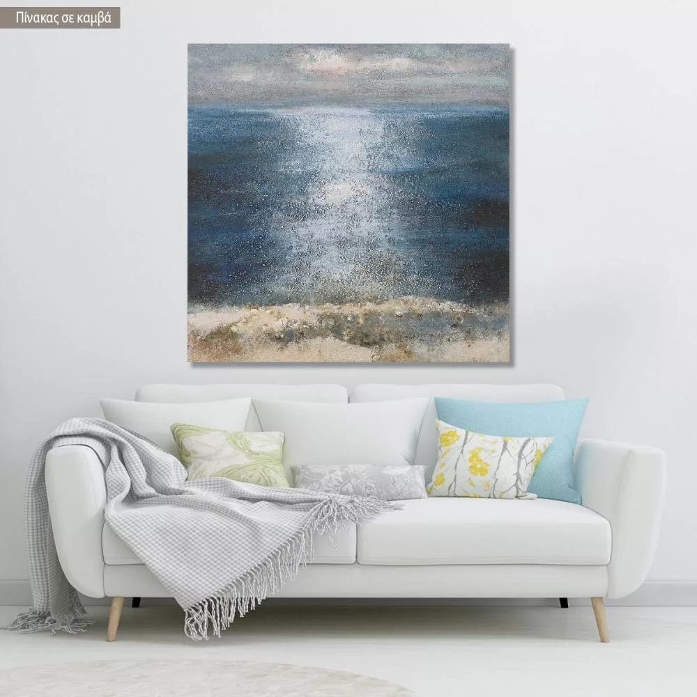 Captures the sun's reflection on the sea, bringing calm and light to your space.
