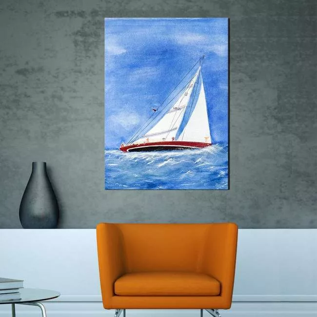 Canvas print Heeling sailboat