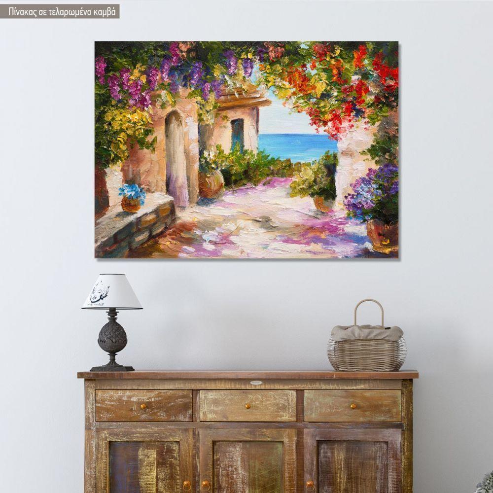 Canvas print House near the sea colorful flowers