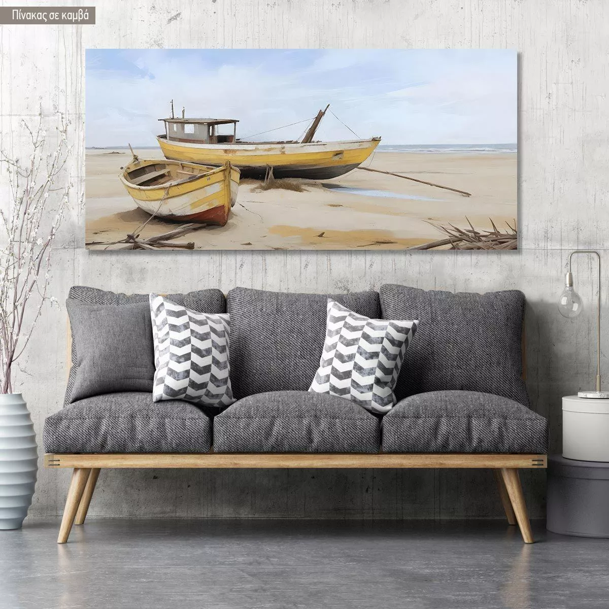 Canvas print Boats on shore, panoramic