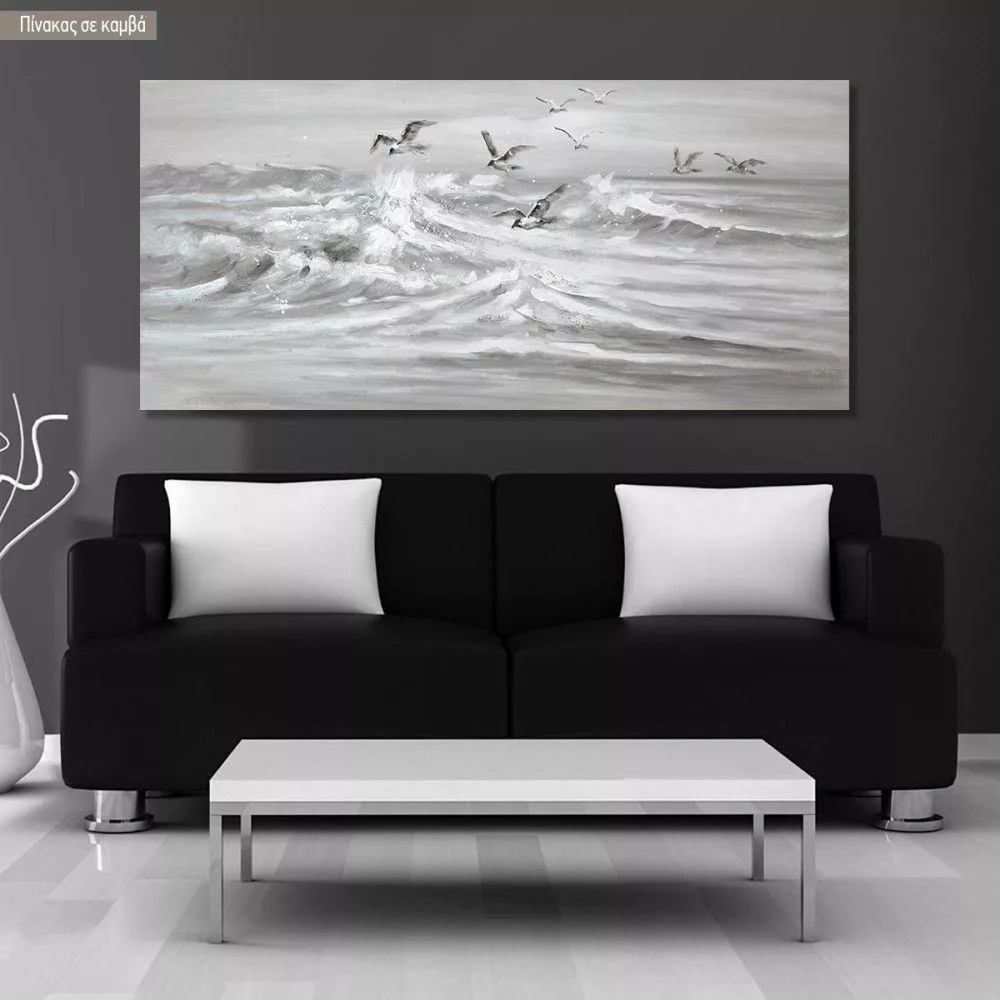 Canvas print Over the gray sea, panoramic