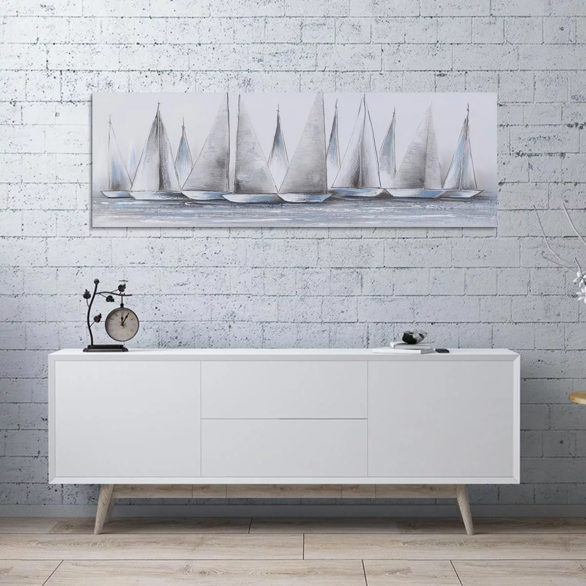 Canvas print Gray sails I, panoramic