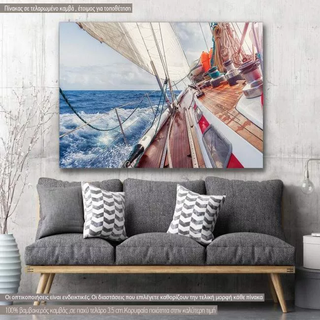 Canvas print Sail boat navigating on the waves II, side