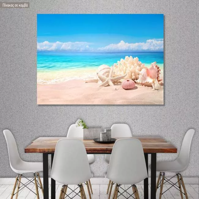 Canvas print Seashells on sand beach