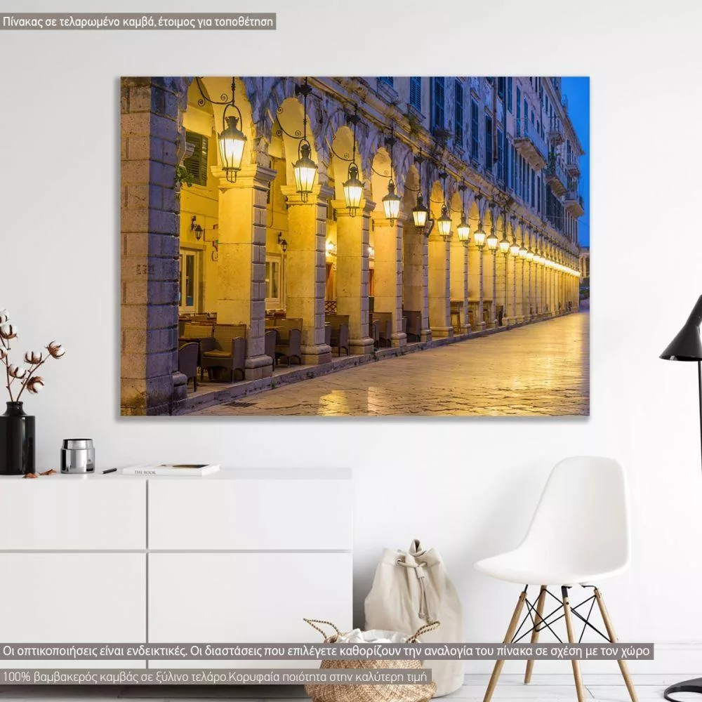 Canvas print, The historic center of Corfu town at night